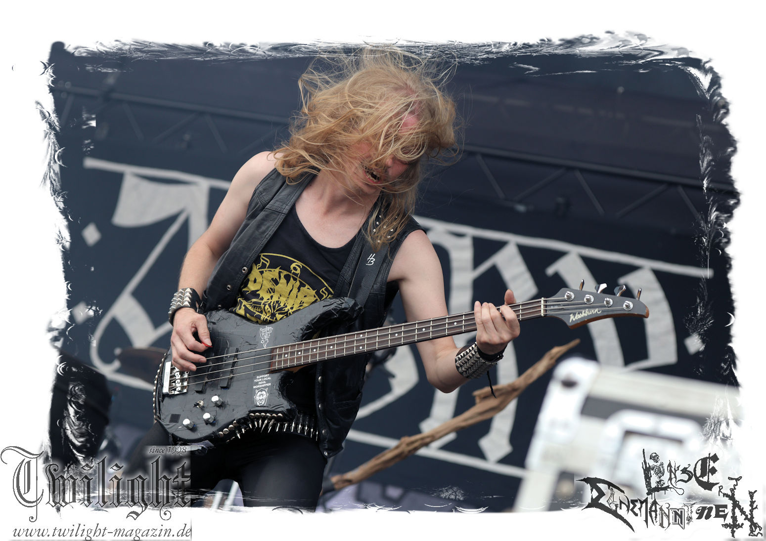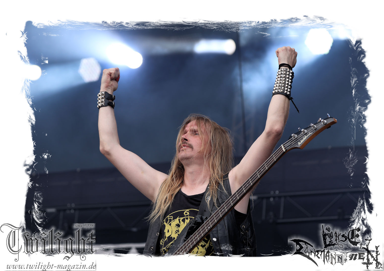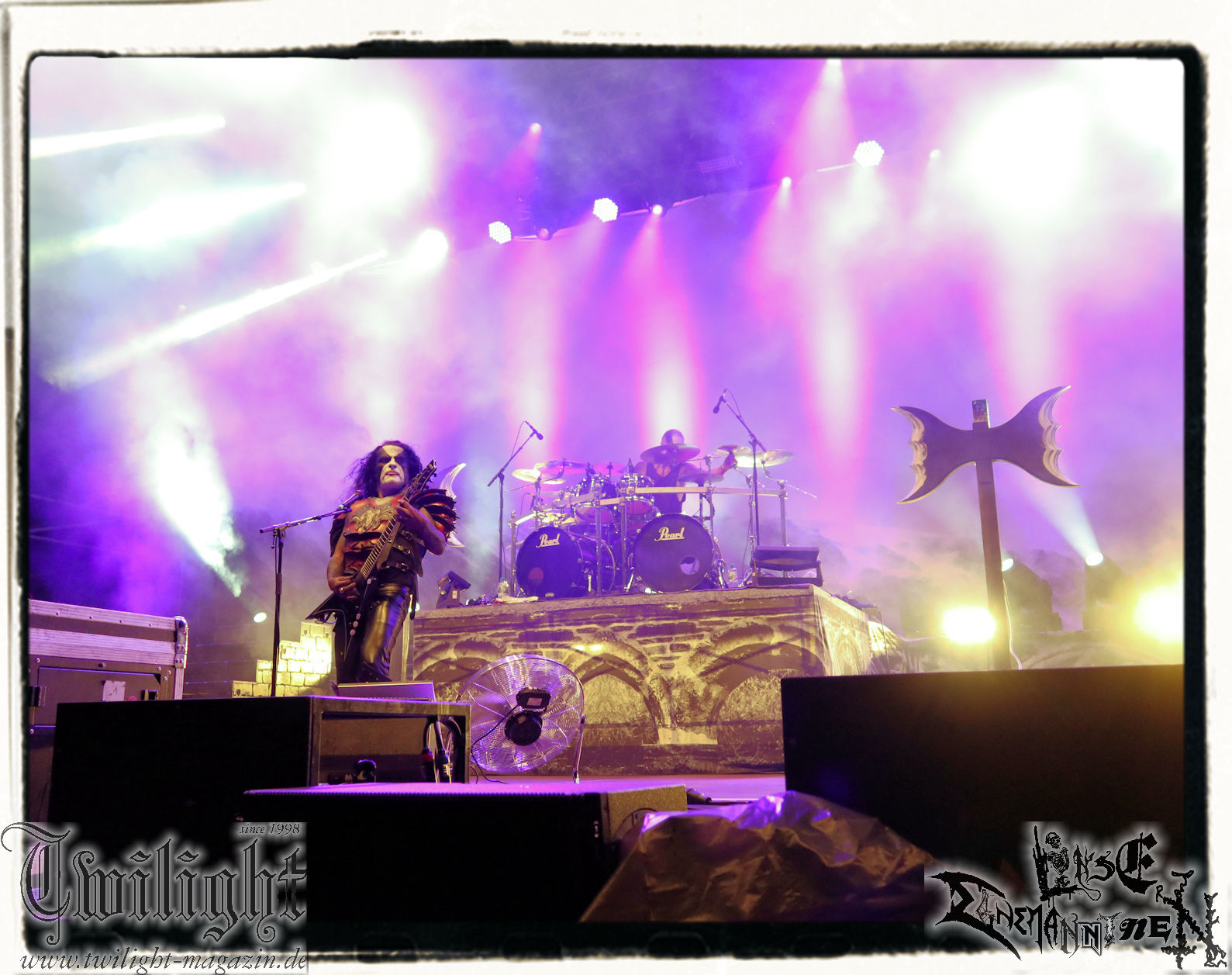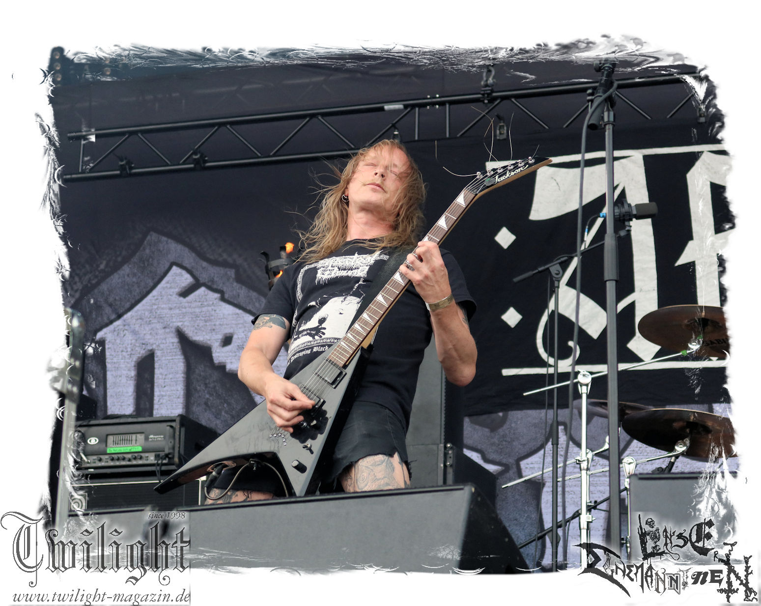 Nach den Hypocrisy- und Bolt Thrower-Covershows im vergangenen Jahr war das Engagement von BLOOD FIRE DEATH eigentlich eine reine Formsache. Denn auf welche Band, wenn nicht Bathory, sollte sich das Publikum des PARTY.SAN METAL OPEN AIRs, eines Festivals, das stilistisch im Kern von Heavy Metal über Thrash- und Death Metal bis hin zum Black Metal seine Schnittmenge hat, einigen können. Wobei Quorthon (R.I.P.) selbst nie aufgetreten ist und nicht mehr auftreten kann. Zum Glück gibt es ein Kollektiv wie Blood Fire Death, welches sich dem vielschichtigen Schaffen des schwedischen Visionärs, der wie kein anderer Einfluss auf die Death- und Black Metal-Szene genommen hat und ohne den es Subgenres wie Viking- oder Pagan-Metal in der heutigen Form vermutlich nicht geben würde, annimmt. Den Kern des einstündigen Sets bildet "Hammerheart" mit drei Songs inkl. des Finales "Road To Asa Bay". Der Einstieg erfolgt standesgemäß mit "Twilight Of The Gods". Dazwischen gibt´s mit "Women Of Dark Desires", "A Fine Day To Die", "Sacrifice" und "War" Klassiker um Klassiker. Trotz der flankierenden Banner am Bühnenrand wird leider kein Stück von "Blood On The Ice" gespielt. Die Darbietung ist absolut würdig, die Musiker über jeden Zweifel erhaben und angesichts des Songmaterials treibt es manch einem Fan im proppevollen Zelt, dass einer Sauna ohne frischen Aufguss gleicht, die Freudentränen in die Augen. Am Ende stellt sich mir nur die Frage, wieso und warum man einer Band, die diesen Aufwand auf der Bühne betreibt und so eine mitreißende Darbietung hinlegt, angesichts eines nahezu unerschöpflichen Fundus an Songmaterial von Bathory, nicht die vollen zwei Stunden des Frühschoppens performen lässt. Aber bekanntlich soll man immer dann aufhören, wenn es am schönsten ist. Fakt ist, Blood Fire Death dürfen mit alternativer Setlist gerne alsbald wiederkommen. (JD) Allerdings gibt es durchaus auch andere Wahrnehmungen: Da Bathory nie live aufgetreten sind, ist dies wohl die beste Möglichkeit, herauszufinden, ob ein solcher Auftritt eine gute Idee gewesen wäre. Dazu gibt es gespaltene Meinungen, ist die Musik von dem viel zu früh verstorbenen Mastermind Quorthon doch nie für Livebühnen geschrieben worden. Doch die Band gibt ihr Bestes und huldigt ihm 20 Jahre nach seinem Tod mit seinen unsterblichen Klassikern. Da schmeckt mir auch der erste Met des Tages wieder! (MS)