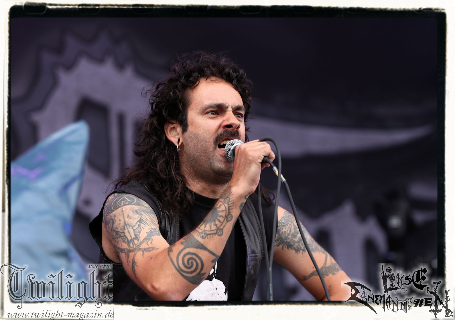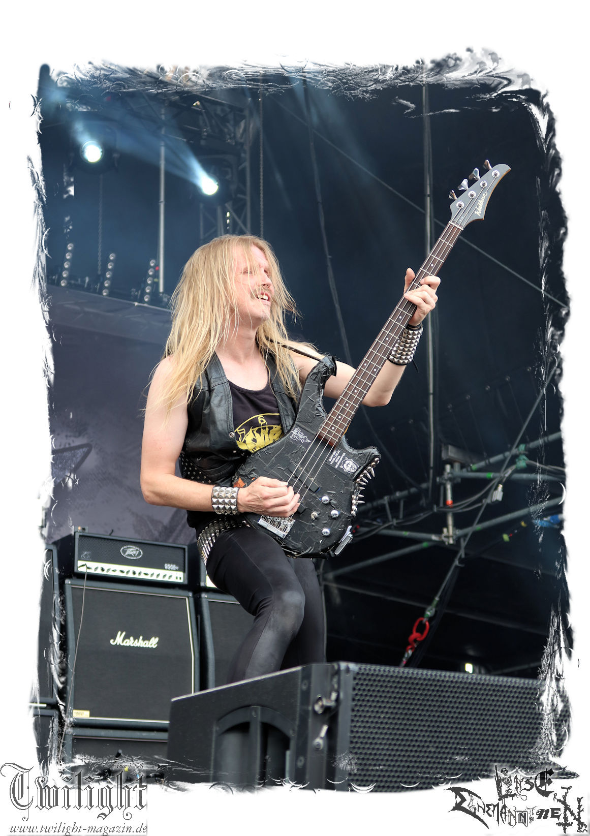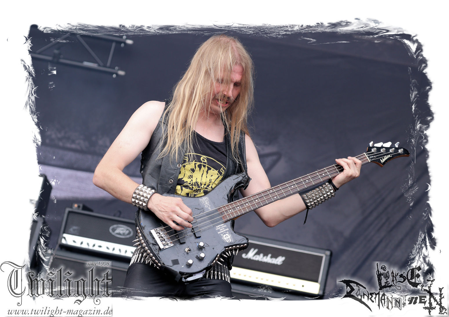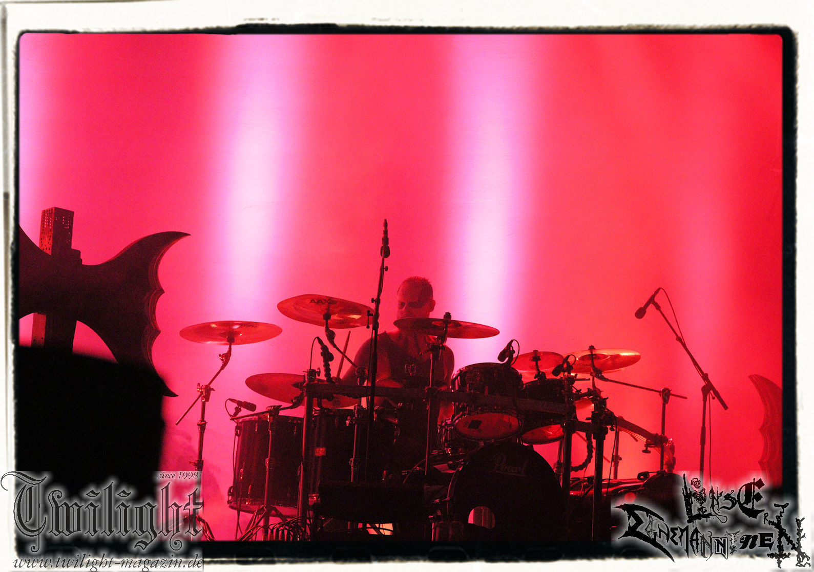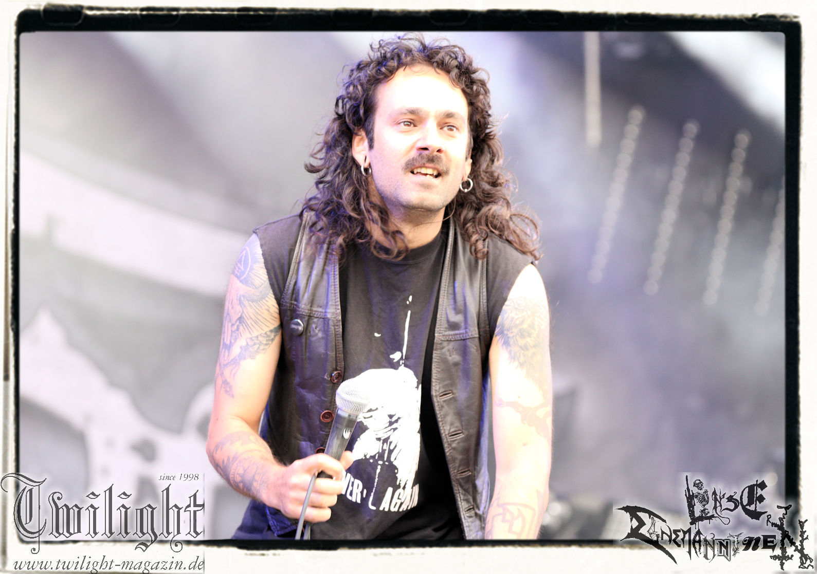Nach den Hypocrisy- und Bolt Thrower-Covershows im vergangenen Jahr war das Engagement von BLOOD FIRE DEATH eigentlich eine reine Formsache. Denn auf welche Band, wenn nicht Bathory, sollte sich das Publikum des PARTY.SAN METAL OPEN AIRs, eines Festivals, das stilistisch im Kern von Heavy Metal über Thrash- und Death Metal bis hin zum Black Metal seine Schnittmenge hat, einigen können. Wobei Quorthon (R.I.P.) selbst nie aufgetreten ist und nicht mehr auftreten kann. Zum Glück gibt es ein Kollektiv wie Blood Fire Death, welches sich dem vielschichtigen Schaffen des schwedischen Visionärs, der wie kein anderer Einfluss auf die Death- und Black Metal-Szene genommen hat und ohne den es Subgenres wie Viking- oder Pagan-Metal in der heutigen Form vermutlich nicht geben würde, annimmt. Den Kern des einstündigen Sets bildet "Hammerheart" mit drei Songs inkl. des Finales "Road To Asa Bay". Der Einstieg erfolgt standesgemäß mit "Twilight Of The Gods". Dazwischen gibt´s mit "Women Of Dark Desires", "A Fine Day To Die", "Sacrifice" und "War" Klassiker um Klassiker. Trotz der flankierenden Banner am Bühnenrand wird leider kein Stück von "Blood On The Ice" gespielt. Die Darbietung ist absolut würdig, die Musiker über jeden Zweifel erhaben und angesichts des Songmaterials treibt es manch einem Fan im proppevollen Zelt, dass einer Sauna ohne frischen Aufguss gleicht, die Freudentränen in die Augen. Am Ende stellt sich mir nur die Frage, wieso und warum man einer Band, die diesen Aufwand auf der Bühne betreibt und so eine mitreißende Darbietung hinlegt, angesichts eines nahezu unerschöpflichen Fundus an Songmaterial von Bathory, nicht die vollen zwei Stunden des Frühschoppens performen lässt. Aber bekanntlich soll man immer dann aufhören, wenn es am schönsten ist. Fakt ist, Blood Fire Death dürfen mit alternativer Setlist gerne alsbald wiederkommen. (JD) Allerdings gibt es durchaus auch andere Wahrnehmungen: Da Bathory nie live aufgetreten sind, ist dies wohl die beste Möglichkeit, herauszufinden, ob ein solcher Auftritt eine gute Idee gewesen wäre. Dazu gibt es gespaltene Meinungen, ist die Musik von dem viel zu früh verstorbenen Mastermind Quorthon doch nie für Livebühnen geschrieben worden. Doch die Band gibt ihr Bestes und huldigt ihm 20 Jahre nach seinem Tod mit seinen unsterblichen Klassikern. Da schmeckt mir auch der erste Met des Tages wieder! (MS)