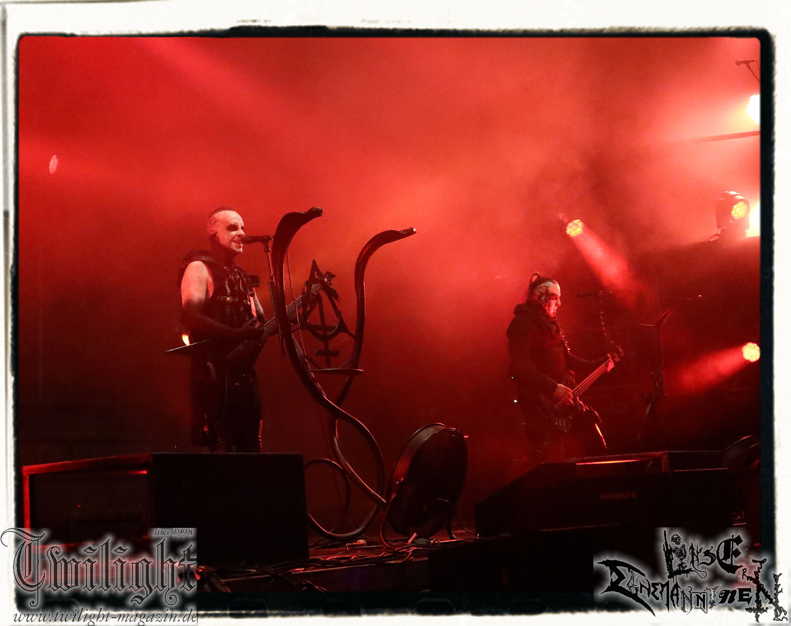 Ein diesjähriges Überraschungshighlight für mich ist sicherlich der bombastische Auftritt von ANAAL NATHRAKH. Die Engländer machen sich live generell rar und eigentlich hatten sie angekündigt gar nicht mehr auftreten zu wollen, doch für das PARTY.SAN machen sie dann doch noch eine Ausnahme. Das Duo bestehend aus Irrumator und Sänger V.I.T.R.I.O.L. inklusive Live-Verstärkung zeigt sich spielfreudig und hat sich anscheinend vorgenommen, mit ihrer komplett eigenständige Kombination aus Grindcore und Black Metal das Festivalgelände komplett abzureißen. Kracher wie „Forward!“ und „Forging Towards the Sunset“ werden durch kleine Anekdoten über des Sängers letzten Party.San Auftritt mit Benediction aufgelockert, bevor die Hölle losbricht. Etwas Entspannung bilden das von At the Gates inspirierte „Feeding the Death Machine“ und der Rausschmeißer „Endarkenment“ mit seinen Power-Metal-Einschüben. Auch am letzten Tag bilden sich Circle Pits und Crowd Surfer probieren ihr Glück, so dass nach dem einstündigen Auftritt die einmalige Energie dieser Ausnahmeband noch lange nachhallt. (MS) Bei dem wahnwitzigen Gig des britischen Duos, welches zu den vielschichtigsten Formationen, die der extreme Metal zwischen Industrial, Black Metal und Grindcore zu bieten hat, kann ich nur einstimmen: Die Darbietung ist so abwechslungsreich wie mitunter anstrengend aber halt auch wahnsinnig beeindruckend mit welcher Präzision die Band live auf der Bühne agiert. Ein Devin Townsend lässt hier ein ums andere Mal grüßen, obwohl man härtetechnisch in ganz anderen Gefilden agiert. Aber in Sachen Spielwitz und dem Streben nach Perfektion liegt man sehr dicht beieinander. Eine Lehrstunde einer wahrlich unterbewerteten Band. (JD)