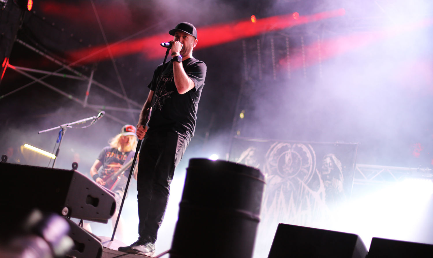Wer sich ins Zelt wagt, weiß: Hier wird’s heiß. Dödsrit ziehen am frühen Nachmittag so viele Leute an, dass kaum noch Platz zum Atmen bleibt. Die Luft flimmert, Schweiß tropft von der Decke – und auf der Bühne lodert Melancholie in Melodieform. Ihr melodischer Black Metal mit hohem Instrumentalanteil wirkt fast tranceartig. Längere Passagen ohne Gesang lassen Raum für Atmosphäre, für dieses bittersüße Gefühl, das zwischen Raserei und Ruhe pendelt. Ein Auftritt wie ein emotionaler Sturm. Das Zelt tobt, und nach dem letzten Ton bleibt nur: Schweigen. Und dann: Applaus. Laut und verdient. (MS)