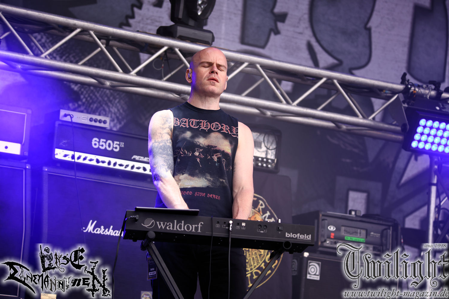 Während sich die Blockheads anschicken, nach dem old-schooligem Death Metal von Scalpture mit klassischem Hochgeschwindigkeits-Deathgrind noch eine Kohlenschippe draufzulegen, versacke ich bei den Kollegen und Freunden von Maere im Camp und komme erst nach Necrowretch zu Schizophrenia wieder auf´s Gelände. Die belgischen Death-Thrasher haben sich in den letzten Jahren zu einer heftigen Live-Institution gewandelt, wobei mir das Quartett auf Konserve oft zu hektisch agiert. Ich hoffe mal, dass es Schizophrenia gelingt, ihre Haupteinflüsse zwischen Slayer und Morbid Angel auf dem Nachfolger des 2022er-Debuts "Recollections Of The Insane" besser zum verschmelzen. Nach der optischen Zeitreise in die späten Achtziger kommen Analepsy zwar nicht weniger brutal, aber bei weitem nicht so mitreißend daher. Zumindest, wenn man mit dem (technisch zwar versierten – Anm. d. Verf.) "stumpfen" Slam-Death-Geprügel der Portugiesen im Speziellen, wie musikalisch im Allgemeinen fremdelt. Ereb Altor holen mich da schon mehr ab. Die Schweden ehren seit mehr als 20 Jahren das episch-metallische Erbe von Quorthon und haben sich dabei mit inzwischen zehn Longplayern längst vom Vorbild Bathory emanzipiert. Obwohl ich bis heute kein einziges Album von Ereb Altor besitzte, kann ich den Status der Band nachvollziehen. Denn besser kann man epischen Viking-Metal kaum zelebrieren, ohne in Fremdscham-Klischees abzudriften. (JD)