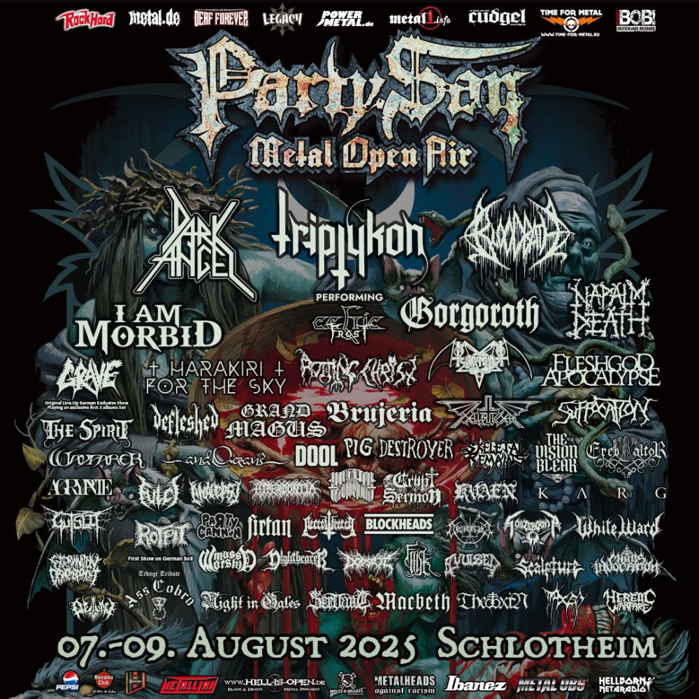 Und so freue ich mich jetzt schon saumäßig auf das kommende Jahr, welches auch den 30. Geburtstags des Party.Sans bedeutet, und wenn ich daran denke, was schon alles geiles an Bands bereits verkündet sind, fange ich sofort wieder an zu sabbern. Testament, Amorphis, Hypocrisy, Firespawn (!), Deceased (unfassbar!), Desaster, Murder Squad (krasse Sache!), Jungle Rot, In The Woods... (!), Wolfbrigade (!!), Tulus, Fleshcrawl (Yeah!), Temple Of Dread (super!), Sear Bliss, Hexvessel, Gates Of Ishtar (Killer!), A Canorous Quintet (ich dachte ich habe mich verguckt) und und und... Alleine die gerade aufgezählten Band sind meiner Meinung nach die Ticketkosten schon absolut wert. Also, wir sehen uns nächstes Jahr ihr Maniacs! (Rudi)
