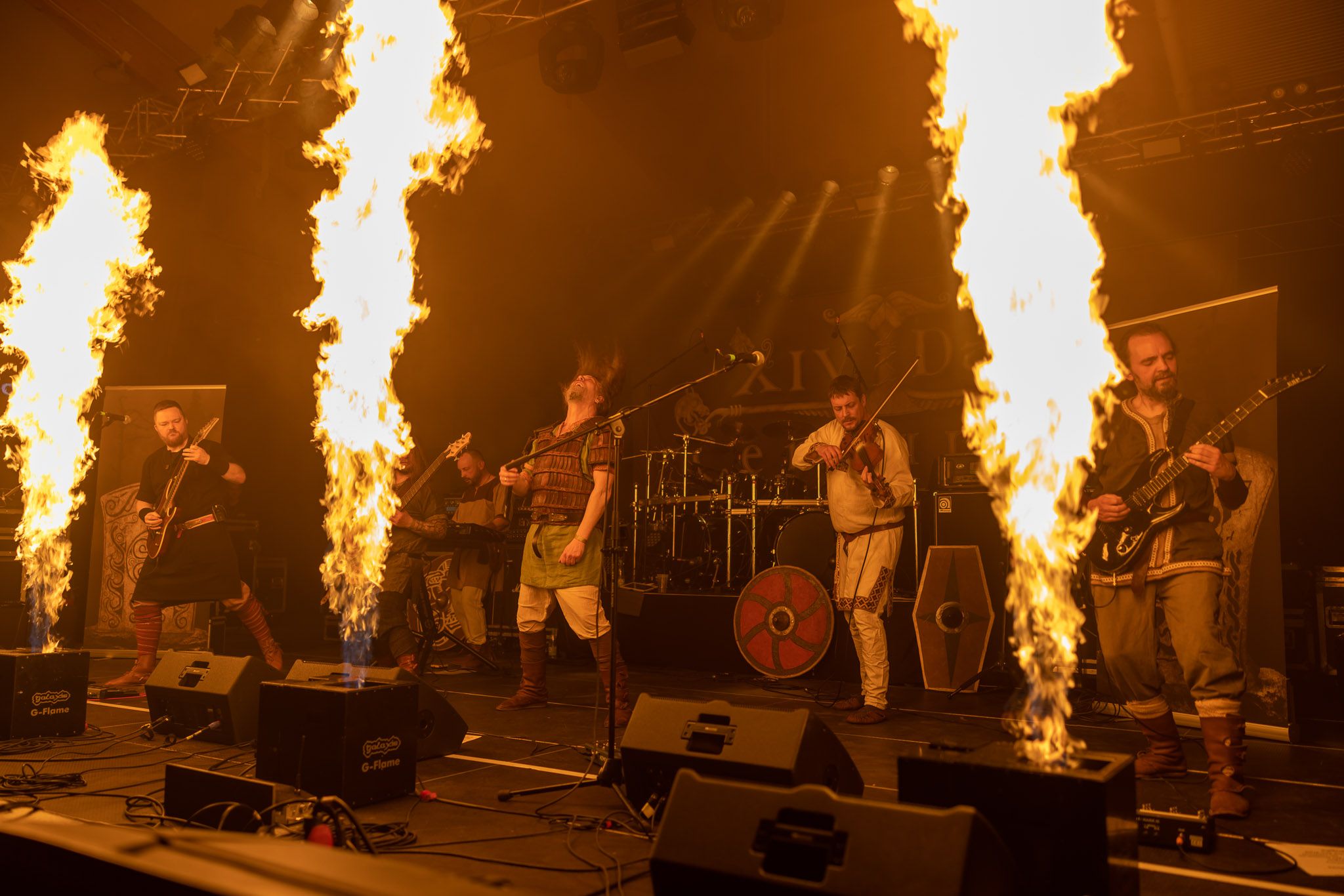 Am Freitag geht es mit Vollgas weiter: Bei HELGRINDUR macht die Menge direkt Stimmung, indem sie während ihres Auftritts das allseits bekannte „Ruderboot“ in der Pit zelebriert. Weniger albern geht es bei XIV. DARK CENTURIES zu. Trotz der sechs Bandmitglieder, inklusive Geige und Keyboard, ist auf der Bühne noch genug Platz für Feuerfontänen, die gekonnt vor allem bei den klassisch angehauchten Stücken eingesetzt werden.