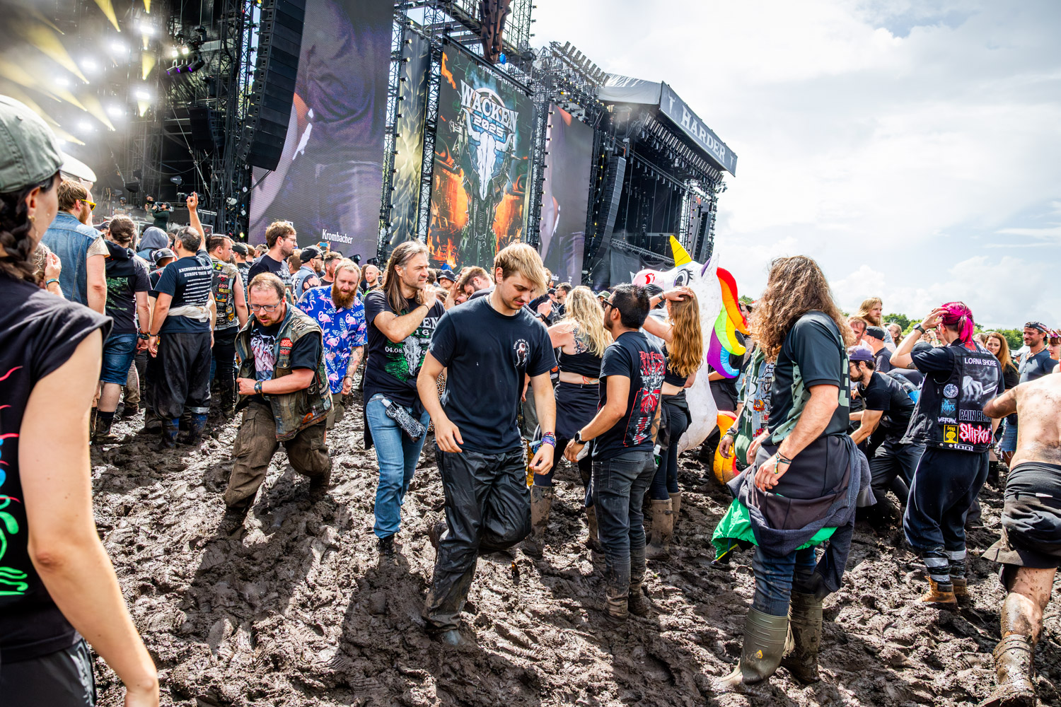 Trotz – oder vielleicht gerade wegen – der widrigen Bedingungen zeigte sich das Festival von seiner intensivsten Seite. Wo andere Events ins Straucheln geraten, wächst Wacken traditionell zusammen. Fremde helfen sich aus dem Schlamm, teilen Unterstände, lachen über durchnässte Kleidung – und stehen wenige Minuten später gemeinsam vor den Bühnen, als wäre nichts gewesen.