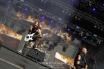 Das kann man von IGORR nicht unbedingt behaupten. Die wohl einzige Band des Festivals, die ohne E-Gitarren auskommt, spaltet mit ihren experimentellen Soundgebilden mit DJ/Sänger, Drummer und Sängerin die Zuhörerschaft. Den einsetzenden Regenschauer nutzen viele Zuhörer dazu, sich in den hinteren Bereich unter das Fress-Zelt zu flüchten. SOULFLY im Anschluss gehen dann auf Nummer sicher und liefern Altbekanntes aus ihrem Oeuvre, das mit „Back to the Primitive“ und „Eye for an Eye“ getoppt wird.