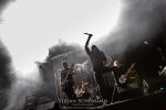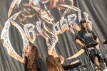 Der letzte Tag beginnt mit einem weiteren, inzwischen fast traditionellen, Überraschungsausflug zur Zweitbühne: Dort unterhalten gerade die jungen Schweizer TYRMFAR die circa 50 anwesenden Gestalten mit ihrer doch sehr bekömmlichen Black/Death-Metal-Mischung, die man sich bei den Großen der Szene abgeschaut hat. Die erste größere Menge findet sich dann vor dem mit Recht immer populärer werdenden Hamburger Duo MANTAR ein, die nur mit Gitarre, Schlagzeug und Gesang eine breitere Doom-Wand erzeugen als andere Bands zu fünft. Nach ihrem letzten Song „Era Borealis“ machen sie dann Platz für die Thrasher MUNICIPAL WASTE, die mit ihrem Anti-Trump-Backdrop politisch eindeutig Stellung beziehen. Auch wenn musikalisch nicht ganz so abwechslungsreich, hat das Publikum deinen Spaß und zerrt zahlreiche Aufblas-Gummitiere in die Circle-Pit.