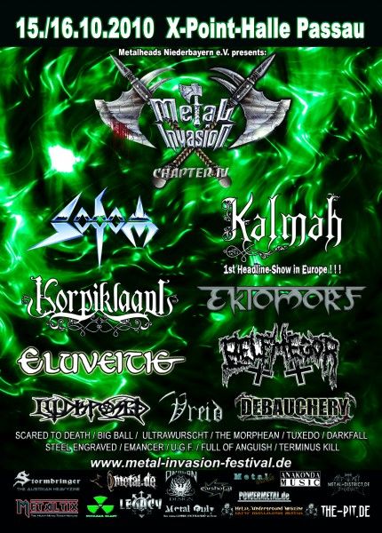 Belphegor, Big Ball, Darkfall, Debauchery, Ektomorf, Eluveitie, Emancer, Full Of Anguish, Illdisposed, Kalmah, Korpiklaani, Scared to Death, Sodom, Steel Engraved, Terminus Kill, The Morphean, Tuxedo, U.g.f., Ultrawurscht, Vreid