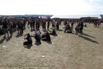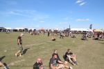 Nachdem man den Besuchern mit dem Whiskey-Pub eine äußerst gediegene Neuerung angekündigt hatte, darf man den massiven Ausbau der (gegen Entgelt) vorreservierbaren Campingflächen und dem damit verbundenen Verlust an freien Flächen durchaus diskutieren. Denn die Reservation garantiert keinesfalls kurze Wege, allerdings kann sie zeitversetzt anreisenden Gruppen jedoch einiges an Stress ersparen. Es gilt das Windhund-Prinzip und damit die alte Tatsache "Wer zuerst kommt...", sowohl bei der Reservierung, wie auch bei der klassischen Anreise ohne Vorreservierung. Eine Vielzahl von im Vorfeld abgesteckter Claims sollte eigentlich auch der Security bzw. den Einweisern die Arbeit erleichtern, doch bei unserer zeitigen Anreise am Mittwoch-Vormittag müssen wir leider erstmalig im Bereich der freien Camping-Flächen eine komplett überforderte Crew dabei erleben, die auf den Platz strömenden Massen mit angemessenen Campingflächen zu versorgen und dabei sicherheitsrelevante Aspekte zu beachten. Letztendlich ist das Problem dann aber relativ schnell behoben und nachdem unser massiver Pavillon ausgerechnet zu jenem Zeitpunkt aufgebaut wird, als sich der einzige relevant aber sturmumtoste, unwetterartige Regenguss des gesamten Wochenendes über die noch jungfreuliche Spielwiese ergießt, kehrt nicht nur Ruhe sondern feierliche Vorfreude ins alljährliche Lagerleben ein. Und diese positive Erwartungshaltung will gepflegt werden, wofür einmal mehr beim traditionellen Metal-Disko - Auftakt im Zelt mit Speis und Trank der Boden bereitet ist, wobei dem Stammkunden recht schnell auffällt, dass sowohl die Bierpreise wie auch der Preis der superben Weimarer Bratwurst leicht angezogen haben. Neben der feuchten Husche von oben haben die Meteorologen auch zielsicher den damit einhergehenden massiven Temperatursturz vorher gesagt, was des Nächtens nicht nur für ungewöhnliche Temperaturen nahe des Gefrierpunktes, sondern am Donnerstag Vormittag auch zum Wolldecken-Engpass bei einem Textil-Discounter in der Schlotheimer City sorgt. Selbst in den schattigen Nächten zu Bad Berka habe ich es in all den Jahren nie so frostig empfunden, wie in diesem Jahr zum Festival-Auftakt. Weitere Kapriolen bleiben jedoch erfreulicher Weise aus und insgesamt meinen es die Wetterfrösche mit den Veranstaltern und dem Publikum auch 2016 mehr als gut. Zwar bleibt es mitunter durchwachsen, doch mit mit voranschreitender Dauer darf sich im Verlauf der nächsten Tage mehr und mehr die Sonne durchsetzen.