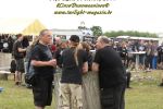 Aber nicht nur das Wetter sondern auch der Verkehr wirbeln den Zeitplan zum Auftakt mächtig durcheinander. Während Black Mood und die Kamikaze Kings noch im Stau feststecken beginnt der etatmäßige Headliner GORILLA MONSOON gegen 21 Uhr als Opener seinen Set, nachdem Sänger/Gitarrist Jack die Frage des Tontechnikers, ob man denn nach dem Einzel-Soundcheck noch einmal einen Song gemeinsam antesten wolle, mit einem verschmitzten Lächeln und einem lapidaren "NÖ" quittiert hat. Hier sind mittlerweile nicht einfach alte Hasen, sondern gestandene Silberrücken des deutschen Undergrounds am Werk, die um ihre Stärken und ihr Können wissen. Kraftstrotzend und mehr als souverän trommelt das Quartett dem Publikum seinen animalisch groovenden Höllenrock mit Doom-, Südstaaten und Stoner-Einflüssen vor die Brust. Das kann nach über anderthalb Dekaden in dieser Intensität keine andere deutsche Band. Das Zelt ist gerammelte voll, wie der Osten sagt, während draußen der nächste Platzregen niedergeht, die Pfützen mehr, größer und tiefer werden, das Lagerfeuer kaum brennen will und die Getränke-Beschaffung mangels Bar im Zelt bei einem Sprint quer über das "Infield" des Protzen Open Airs zu einem feuchtfröhlichen Vergnügen der anderen Art wird.