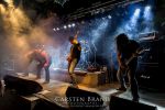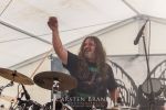 Die Magdeburger TORTURIZED haben in den letzten zehn Jahren eine gewaltige Entwicklung genommen, von der klassischen Old-School - Death Metal - Band zur modern ausgerichteten Tech-Death-Formation, und das komplett ohne Label im Rücken. Das jüngste Zeugnis "Omnivore" gleicht einer Urgewalt, die, gebündelt durch die spielerische Klasse der Musiker in kontrollierte Bahnen gelenkt wird. Das unterstreicht auch die beeindruckende halbe Stunde im Zelt, bei der der Sound heute leider nicht ganz so gut wie an den vorangegangenen Tagen ist. Dennoch würde ich mir zukünftig wieder mehr Bauch statt Kopf im Hause Torturized wünschen, sind Songs und handwerkliches Können zwar über jeden Zweifel erhaben, aber gerade Live wirkt mir das ganze mittlerweile zu klinisch, steril und klingt manchmal schon fast (Siggi, verzeih´ mir diesen Ausdruck!!!) wie Hipster - Death Metal. (JD)