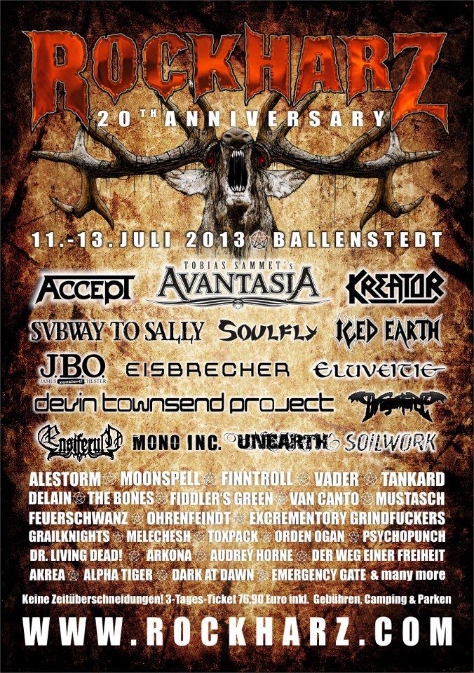 Das ROCKHARZ 2013 ist für mich in verschiedener Hinsicht bemerkenswert gewesen. Zum einen fand ich die beteiligten Bands sowohl in ihrer Qualität als auch in der Mischung ausgesprochen gelungen - für mich eigentlich eins der besten Line-Ups in der Geschichte des Festivals. Zum anderen war der Wettergott in Geburtstagslaune und hat den Machern zum 20. Jubiläum endlich einmal ein regenfreies Festival beschert. Zwar dachte der Werkstattmeister am Montag, als mein Auto zur Inspektion musste, ich wäre gerade die Rally Paris-Dakar gefahren, doch Staub ist allemal schöner als Schlamm. Und mit diesen Worten verabschiede ich mich bis 2014!