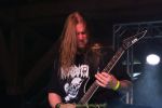 Für die Lokalmatadoren ATOMWINTER folgt anschließend ein Heimspiel, dass im Fußball einem zu verwandelnden Elfer ohne Torwart gleich kommen würde. Und das Quartett nimmt es ebenso sportlich und verwandelt das Geschenk wahrlich souverän. Allen voran Sänger Holzschneider, für den der Begriff Rampensau erfunden worden zu sein scheint, ein Typus Mensch, dem man sowohl abends im Dunkeln allein auf der Straße nicht wirklich begegnen möchte, auf den man jedoch in der ungemütlichsten Situation zählen kann. Darüber hinaus ist er mit einem außergewöhnlichen wie variablem Organ gesegnet, mit dem er großartig umzugehen weiß und mit dem er dem vermeintlich simplen aber äußerst effektiven Todesstahl ein äußerst saures Sahnehäubchen verpasst. Die Meute vor der Bühne huldigt dem Quartett und sorgt für einen amtlichen Moshpit. Keine Ahnung, wieso ich diese Band bisher nicht wirklich auf dem Radar hatte. Es gibt nicht wenige Bands, die aus relativ bescheidenen Mitteln soviel heraus holen. Wenn man einen "Asphyx-Gedächtnispreis" ausloben würde, dann wären Atomwinter jedenfalls ein ganz heißer Anwärter darauf. Die anstehenden Auftritte auf dem Protzen und dem Party.San Open Air sind, wenn nicht sogar überfällig, dann mehr als verdient.
