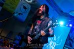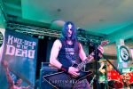 Obwohl die Running Order nach dem Umzug in die Mensa modifiziert und nach hinten verschoben wurde, verspätet sich der Festivalauftakt gehörig. Wenn es läuft, dann halt richtig. REPULSIVE FEAST lassen sich dadurch aber keineswegs aus dem Konzept bringen. Das Trio um Arcane Frost-Aron, Demored-Magnus und Cryptic Brood-Steffen haben einen Hang und Drang für rohen, groben und extrem ranzigen Death Metal mit Grindcore-Attacken, simpel brutal und auf alles Wesentliche reduziert, kraftvoll ohne dabei ins Chaos abzudriften. Leider gleicht die Vocal-Performance von Aron und Magnus über weite Strecken des rund halbstündigen Gigs einer Stummfilm-Einlage. Trotz dieser Soundprobleme weiß das Trio am Nachmittag in einer Location, die trotz aller Mühen der Veranstalter weitgehend frei von Flair und Atmosphäre ist, zu überzeugen und bietet für einen Opener einen schon recht amtlichen Auftakt, der auch vom noch recht überschaubaren Publikum honoriert wird.