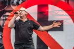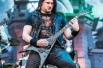 Die Verlängerung und das Elfmeterschießen waren vermutlich eine arge Geduldsprobe für den Headliner, der mit seinem Auftritt auf das Ende des Fußballspiels warten musst. Durch das Ergebnis war allerdings beste Stimmung auf dem Platz, als sich aus viel Rauch und bunten Lichtern zwei Drachenköpfe erhoben und das Erscheinen der nordischen Berserker ankündigte. AMON AMARTH eröffnete auch gleich mit einem Klassiker und das bekannte Riff aus „The Pursuit of Vikings“ erlaubte es uns zahlreich anwesenden Zuschauern sofort wieder vom Fußball- in den Metal-Mod