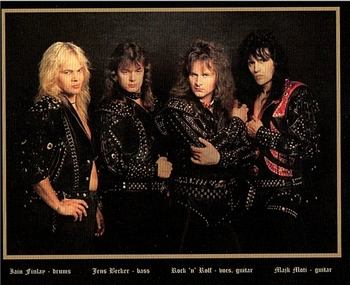 Damals hat Iain Finlay Schlagzeug in der Band gespielt. Rock ‘N‘ Rolf kam dann mit einem Tape an auf dem Songs waren und die sollte sich Iain dann anhören. Dass hat er zwei- oder dreimal gemacht und dann hat er die Tracks eingespielt. Iain war ein absolutes Schlagzeug-Tier und ich habe nicht verstanden warum Rolf ihn nach der Scheibe rausgeworfen hat. Iain und Jens Becker (Bass – TZ) waren eine absolute Rhythmus-Sektion für eine Heavy Metal Band, etwas Besseres gab es da nicht.