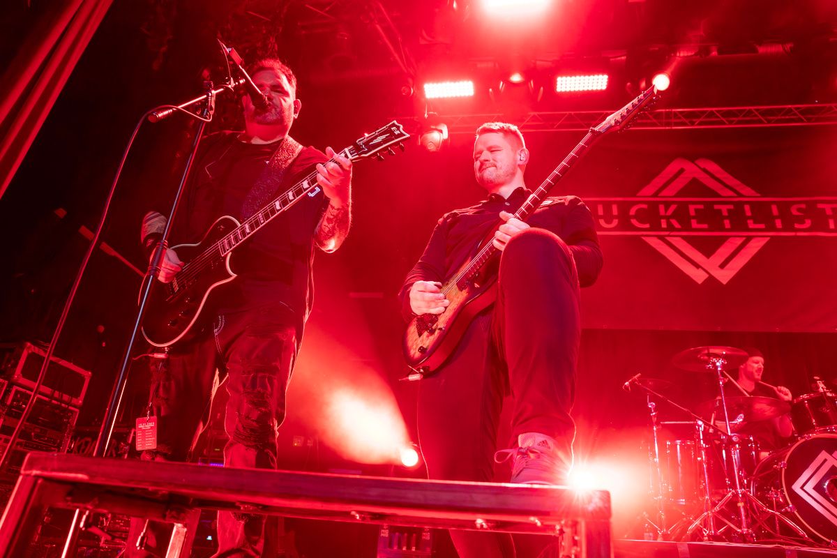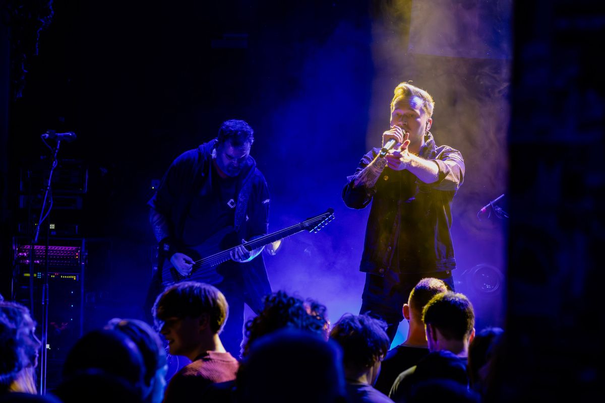 Um 22 Uhr dann endlich die Performance, auf die Familie, Freunde und vor allen Dingen auch Fans gewartet hatten. Die Gastgeber des Abends BUCKETLIST betraten endlich die Bühne, um das Publikum in den nächsten 75 Minuten auf eine musikalische Reise durch die letzten 8 Jahre mitzunehmen. Und natürlich gehören auch Emotionen zu einem richtigen Jahresabschluss. Und so ließ es sich Sänger Chris Härke nicht nehmen, sowohl über Erfolge als auch Zweifel zu sprechen, die ihn und seine Bandmitglieder - Sebastian Tittel und Timo Lohrenz an den Gitarren, Jeremias Hampe am Bass sowie Hannes Westendorf am Schlagzeug - auf dem gemeinsamen Weg bewegten und bewegen.