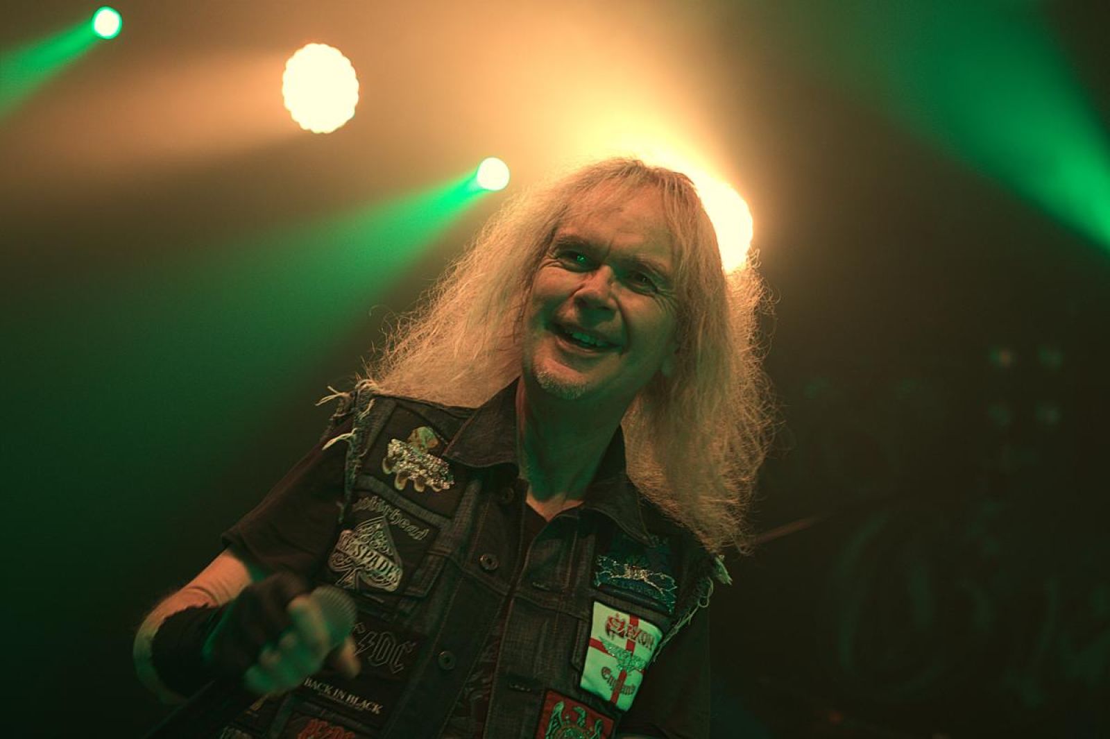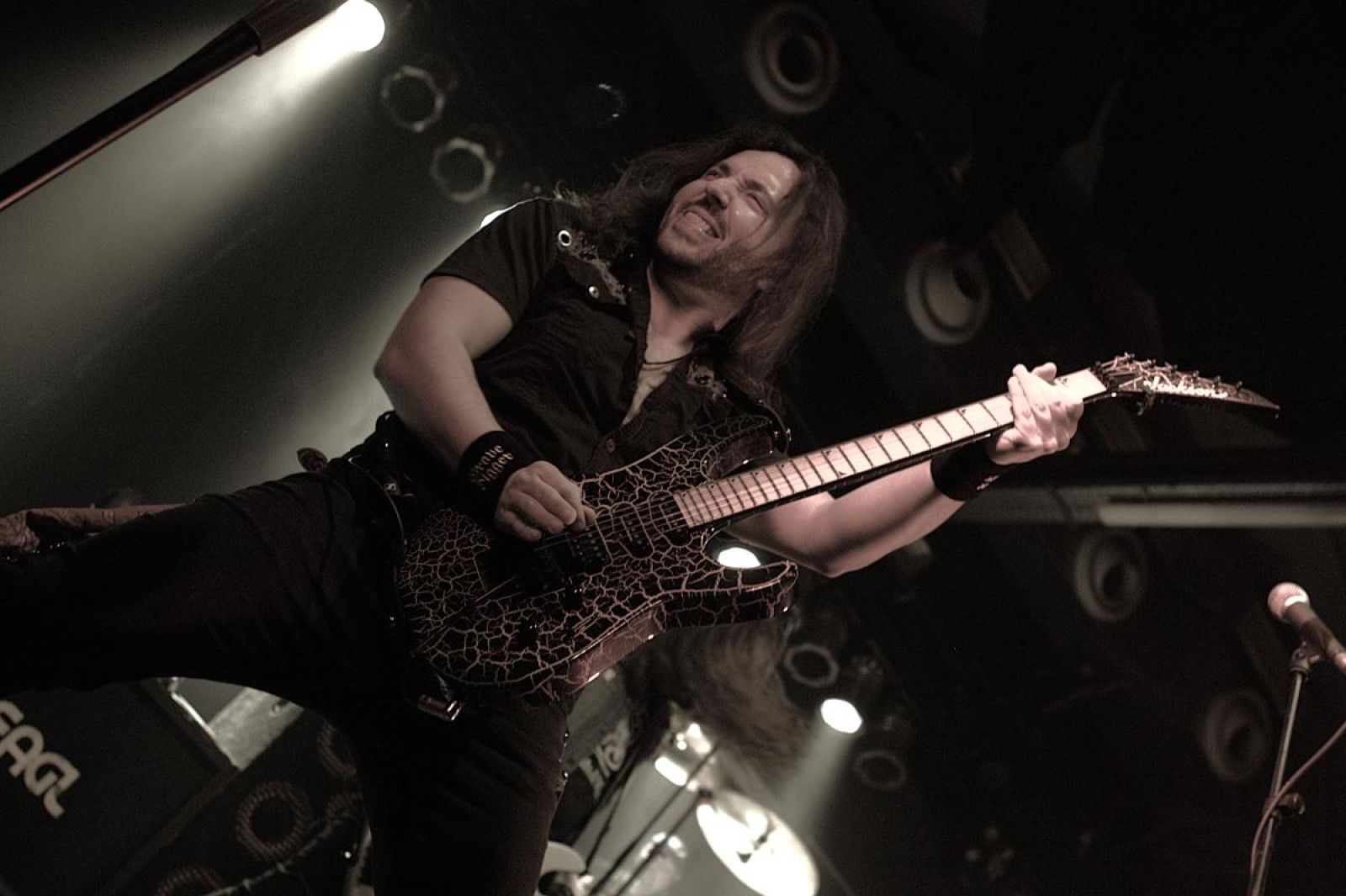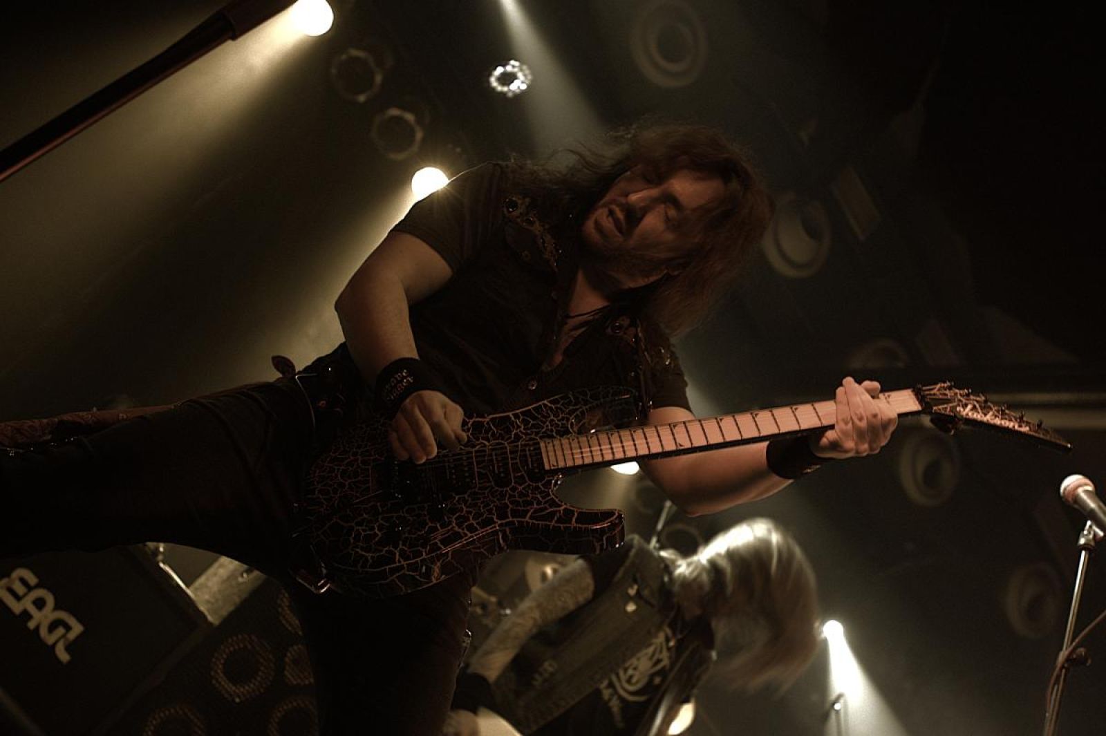 Dass VICTORY an diesem Abend auch dabei sind, hatte ich vollkommen verdrängt. Es wurde mir erst klar, als Axeman Herman Frank vor der Halle auftauchte. Obwohl die Wahl-Hannoveraner mit „Circle of Life“ ein aktuelles Album auf dem Markt haben, wurde für die Tour ein „Best Of“ Set angekündigt. Und man darf sagen, dass die Band Wort gehalten hat und ein wirklich grandioses Set abgeliefert hat. Dabei fügten sich die aktuelleren Songs „God of tomorrow“ sowie „Surrender My Heart“ und „Tonight We Rock“ perfekt ins Set ein. Herman Franks vor einigen Jahren runderneuerte Band lief wie ein Uhrwerk und wenn man irgendwo farbige Bandanas am Gürtel tragen durfte, dann hier und heute. Michael Pesin (Git.) und Herman Frank duellierten sich nicht nur mit ihren Äxten, sondern buhlten auch um den Preis des schönsten Cowboystiefels. Malte Burkert war ja die letzte Frischzellenkur bei VICTORY und der Basser sorgte heute mit seinem wummernden Bass für den passenden Herzschlag der Hard Rocker, während Drummer Michael Stein wie ein mechanischer Schmiedehammer auf seine Kessel drosch. Während viele ältere Fans der Band wohl den Zeiten mit Charlie Huhn am Mikro nachtrauern, fand ich den ehemaligen CHATEAU Sänger Jioti immer unglaublich stark und passend für den Sound von VICTORY. Dementsprechend glücklich bin ich auch mit der Arbeit seines Nachfolgers Gianni Pontillo. Der Schweizer erinnerte optisch zwar etwas an einen wenig vertrauenserweckenden Versicherungsvertreter, lieferte Gesanglich aber richtig fett ab und kam durchweg sympathisch rüber. Zumal er sich geschickt aus einem Fettnäpfchen herausmanövrierte, nachdem sich herausgestellt hatte, dass der von ihm angekündigte Song gar nicht aus den 80ern stammte, sondern aus den 90ern. Schwamm drüber.