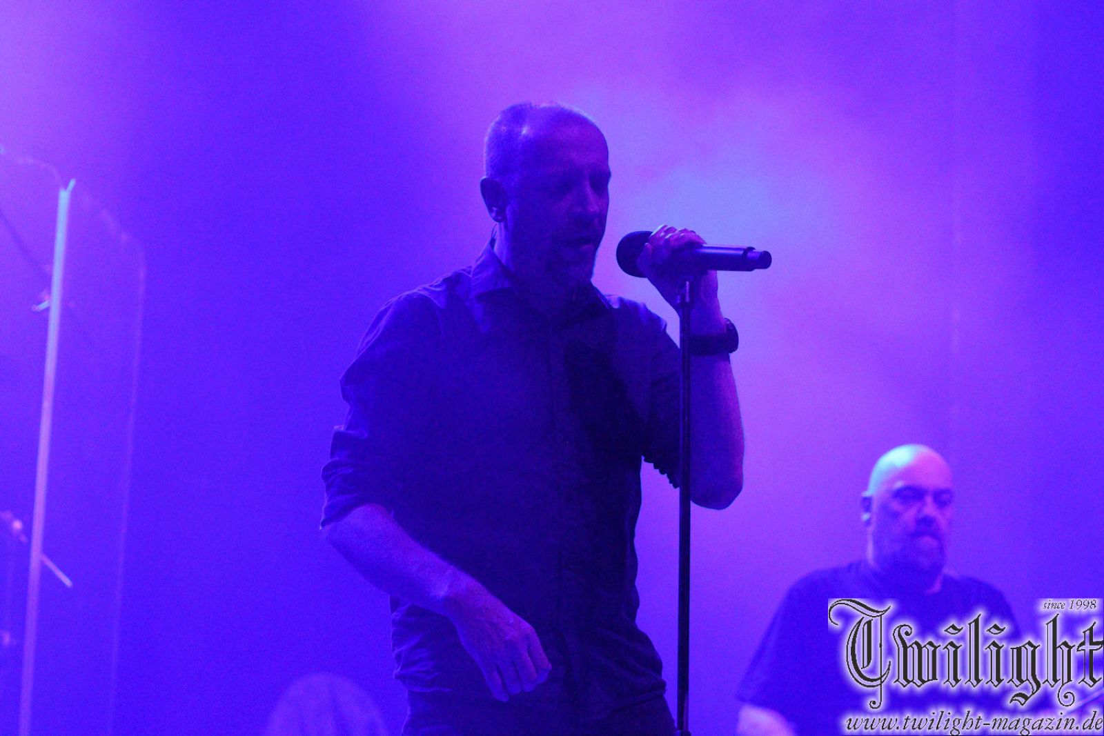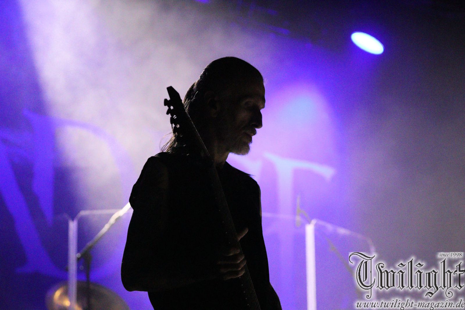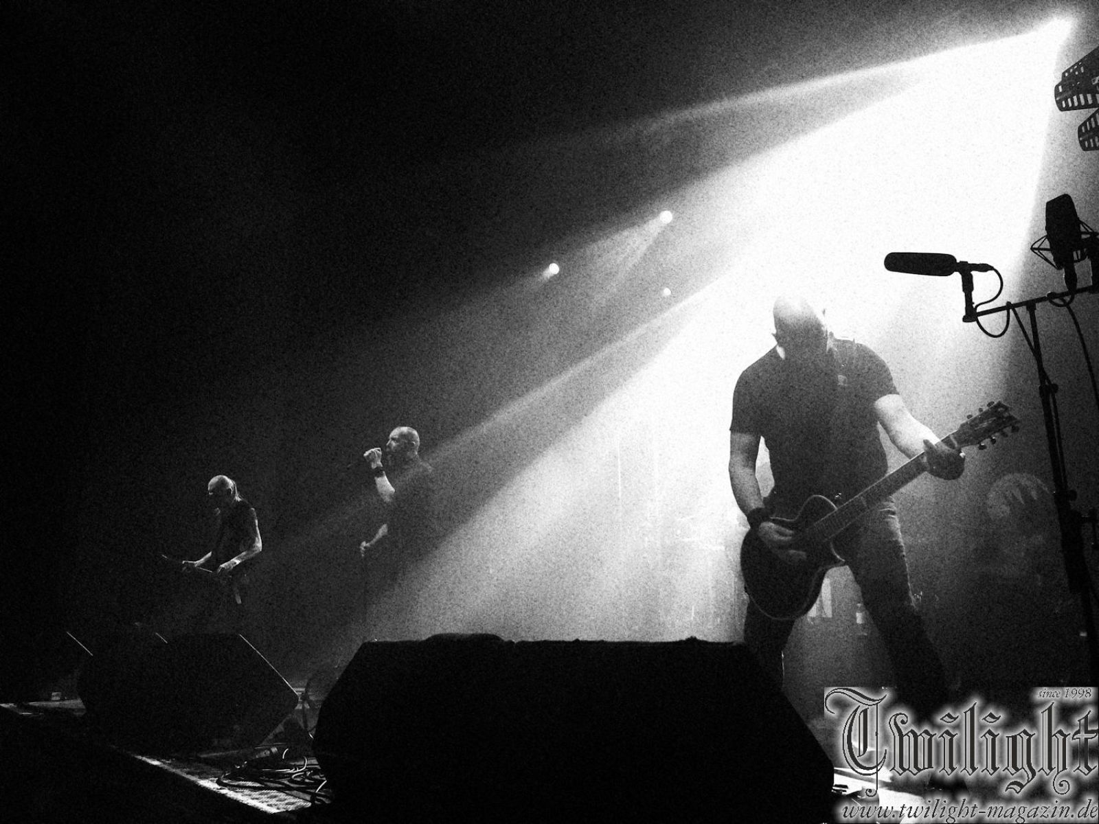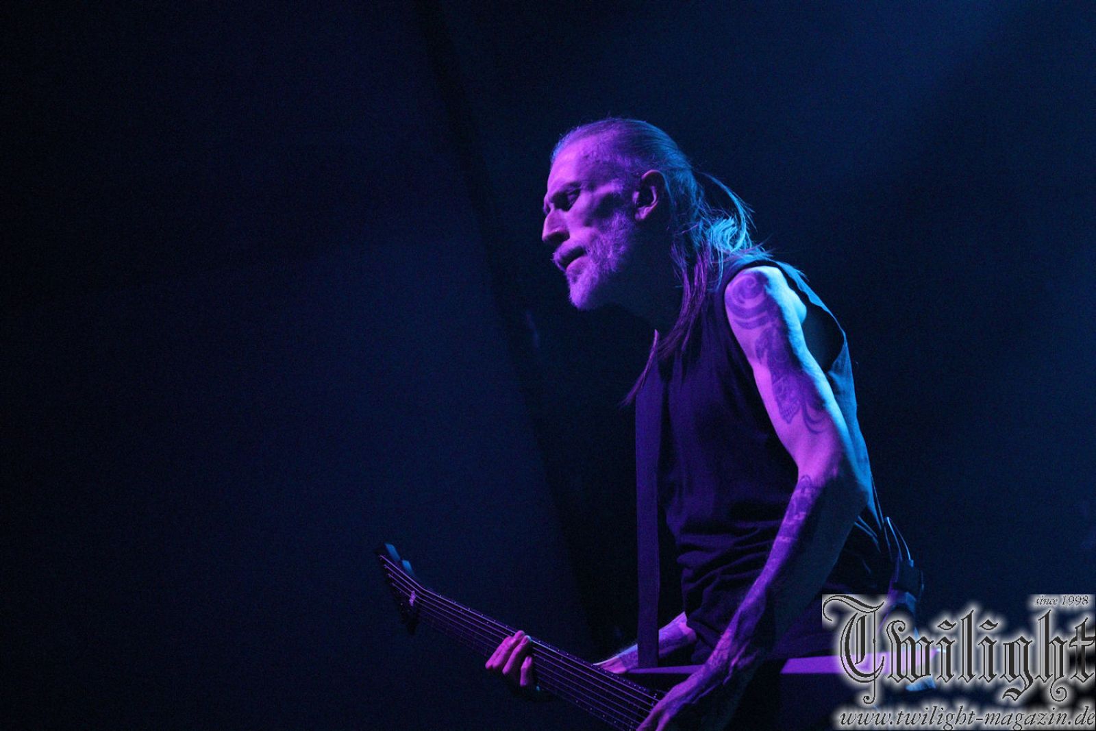 Paradise Lost ist als Live-Band eher eine Wundertüte, mal gut, mal schlecht, mal richtig mies, und Nick Holmes macht es einem da auch nicht unbedingt leichter mit seinen manchmal schon fast komplett ausbleibenden Ansagen. Heute hat er einen guten Tag und ist redselig. Sie seien Paradise Lost, aber das sollte sich inzwischen herumgesprochen haben, scherzt er. Ebenfalls verweist er darauf, dass sie ein paar alte Songs spielen würden, weil sie eben auch eine ganze Menge davon hätten. Kein Wunder, schließlich ist "Ascension" das mittlerweile 17. Studioalbum der Band. Also was spielt man, wenn man gerade das aktuelle Album betourt, aber eigentlich genug Hits in der Hinterhand hätte, um ganze Abende zu füllen? Man muss aussieben. Und so bleiben fast schon erwartungsgemäß Lost Paradise und Gothic sowie Symbols of Life, Paradise Lost, The Plague Within und Medusa komplett ungehört. Der Schwerpunkt der Songs liegt natürlich auf Ascension, aber auch der Rest kann sich absolut sehen lassen. Mit "Say just words" wird das offizielle Set beendet, um dann noch einmal mit No Celebration, Ghosts und Silence like the grave zurückzukommen. Die geringste Gegenliebe erhält die Band wohl für Mouth, aber die Band hat eine so breite Fangemeinde über die Jahre gesammelt, dass man es natürlich nicht mit jedem Song auch jedem recht machen kann. Die Soundprobleme von Saturnus sind übrigens inzwischen gelöst, sodass man einen richtig satten Sound genießen kann, und auch die Backtracks vom Gesang sind so dezent eingesetzt, dass man es nur an manchen Stellen tatsächlich direkt merkt. Es hat auf jeden Fall nicht das Playback-Flair vom Ultima Ratio Auftritt.