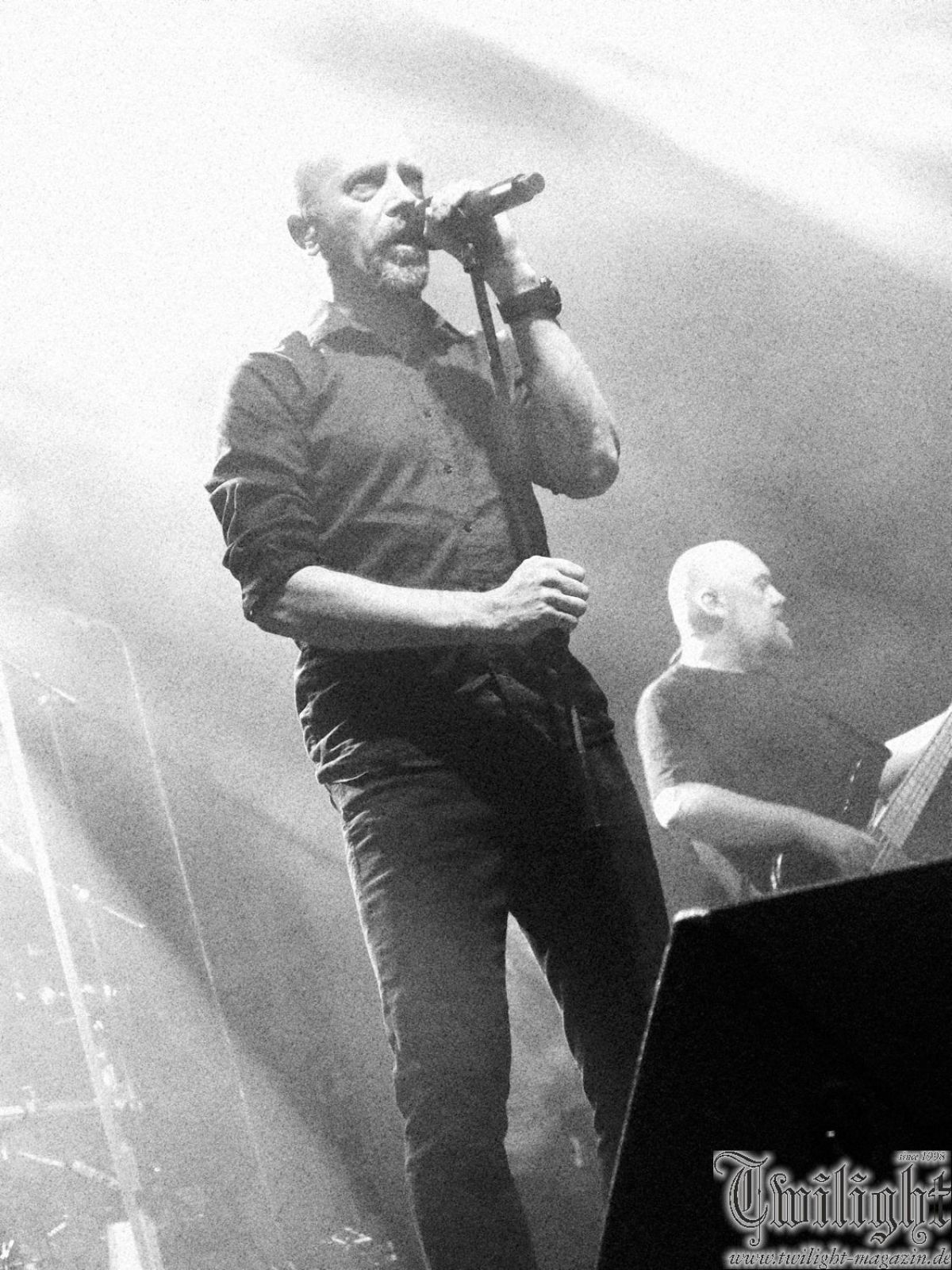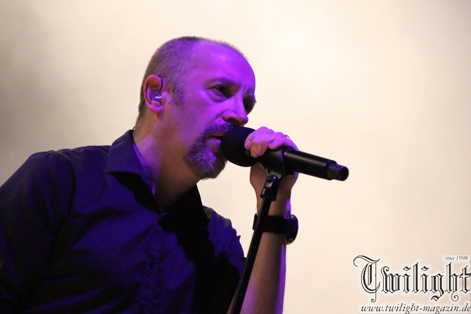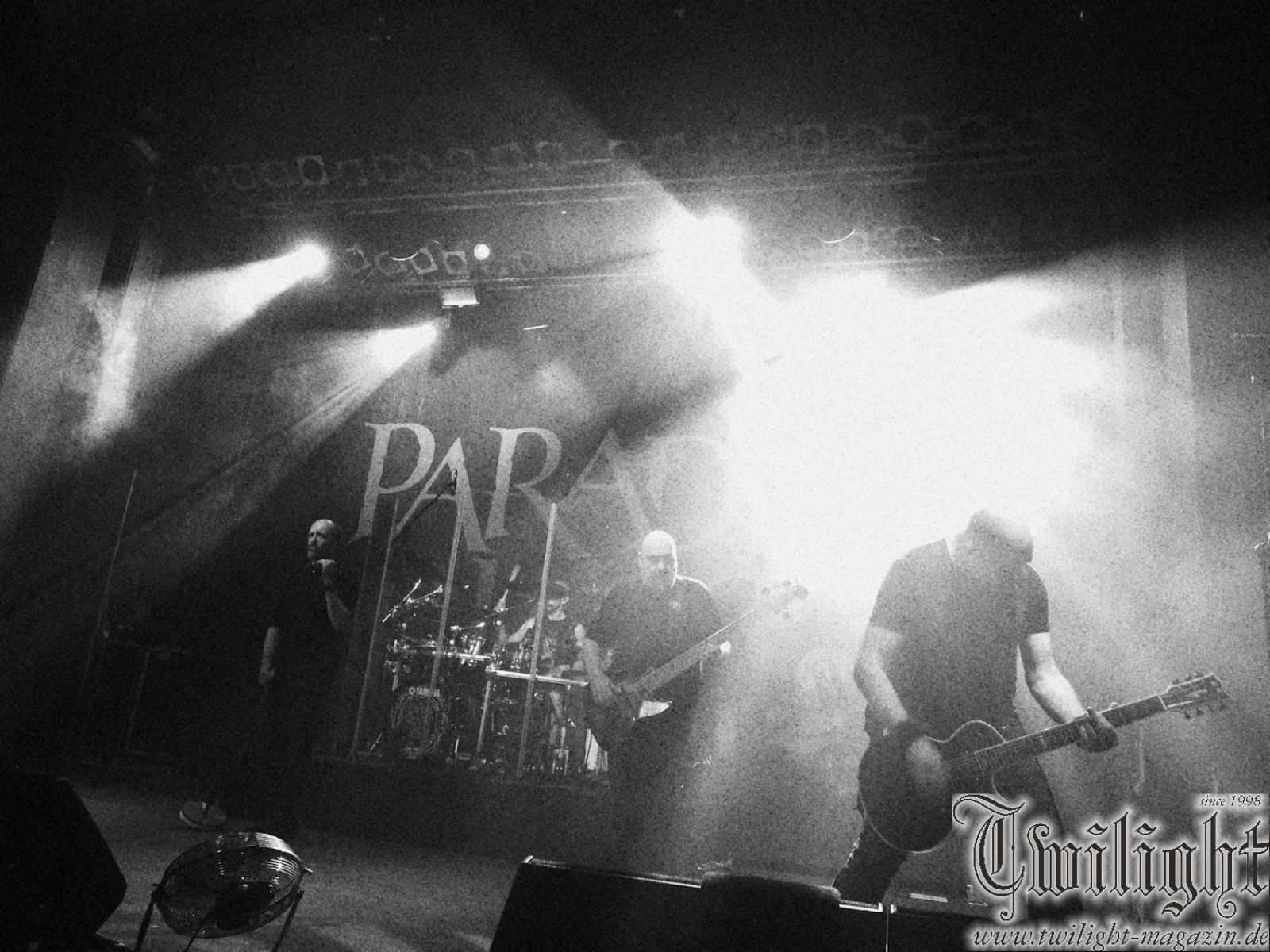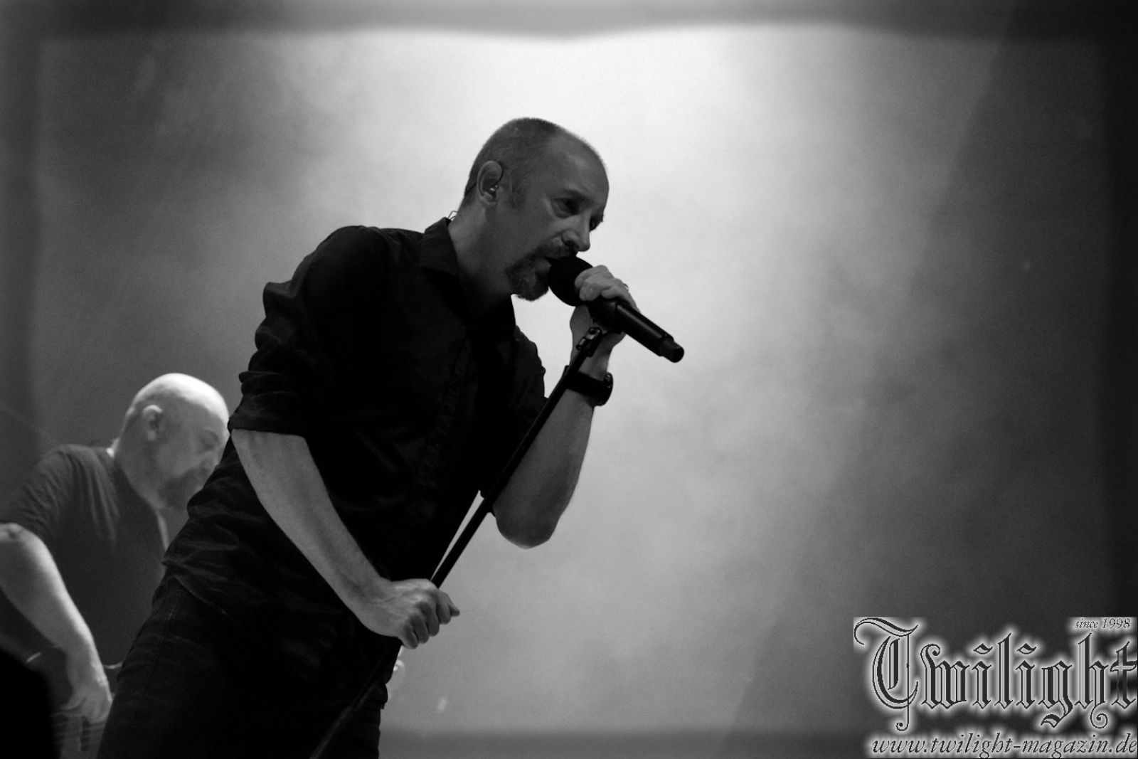 Paradise Lost ist als Live-Band eher eine Wundertüte, mal gut, mal schlecht, mal richtig mies, und Nick Holmes macht es einem da auch nicht unbedingt leichter mit seinen manchmal schon fast komplett ausbleibenden Ansagen. Heute hat er einen guten Tag und ist redselig. Sie seien Paradise Lost, aber das sollte sich inzwischen herumgesprochen haben, scherzt er. Ebenfalls verweist er darauf, dass sie ein paar alte Songs spielen würden, weil sie eben auch eine ganze Menge davon hätten. Kein Wunder, schließlich ist "Ascension" das mittlerweile 17. Studioalbum der Band. Also was spielt man, wenn man gerade das aktuelle Album betourt, aber eigentlich genug Hits in der Hinterhand hätte, um ganze Abende zu füllen? Man muss aussieben. Und so bleiben fast schon erwartungsgemäß Lost Paradise und Gothic sowie Symbols of Life, Paradise Lost, The Plague Within und Medusa komplett ungehört. Der Schwerpunkt der Songs liegt natürlich auf Ascension, aber auch der Rest kann sich absolut sehen lassen. Mit "Say just words" wird das offizielle Set beendet, um dann noch einmal mit No Celebration, Ghosts und Silence like the grave zurückzukommen. Die geringste Gegenliebe erhält die Band wohl für Mouth, aber die Band hat eine so breite Fangemeinde über die Jahre gesammelt, dass man es natürlich nicht mit jedem Song auch jedem recht machen kann. Die Soundprobleme von Saturnus sind übrigens inzwischen gelöst, sodass man einen richtig satten Sound genießen kann, und auch die Backtracks vom Gesang sind so dezent eingesetzt, dass man es nur an manchen Stellen tatsächlich direkt merkt. Es hat auf jeden Fall nicht das Playback-Flair vom Ultima Ratio Auftritt.