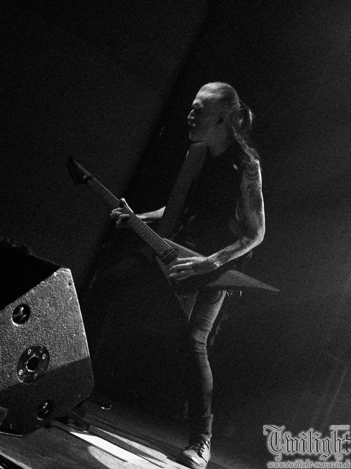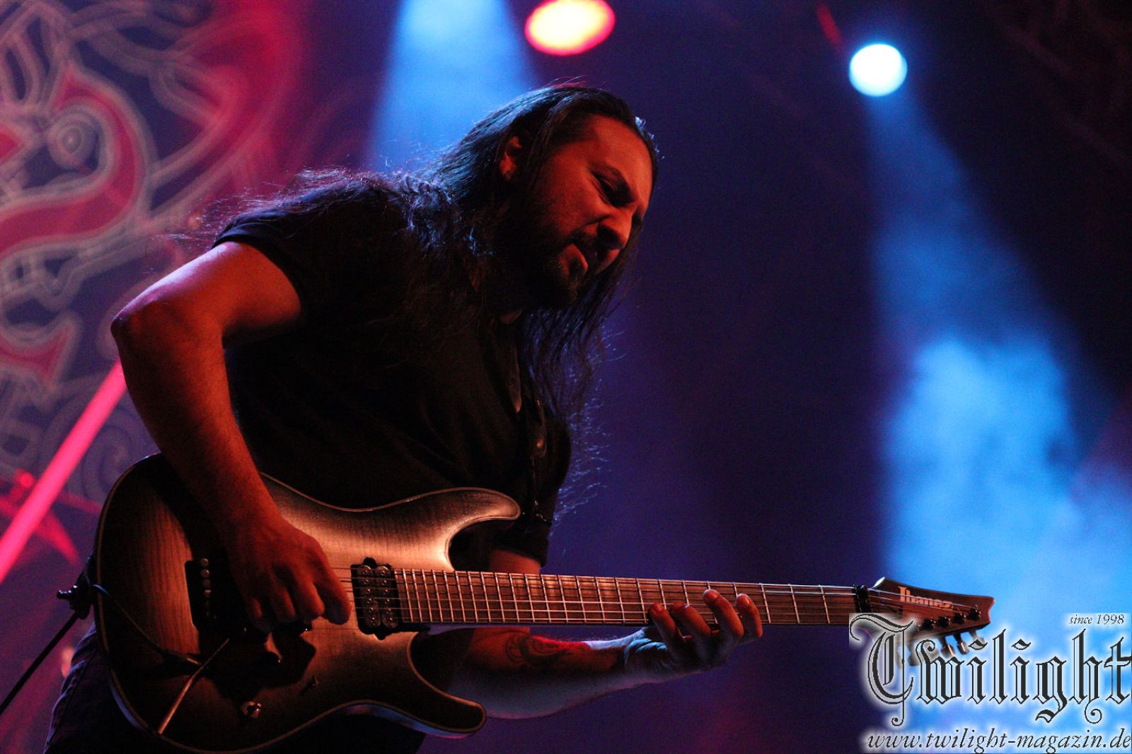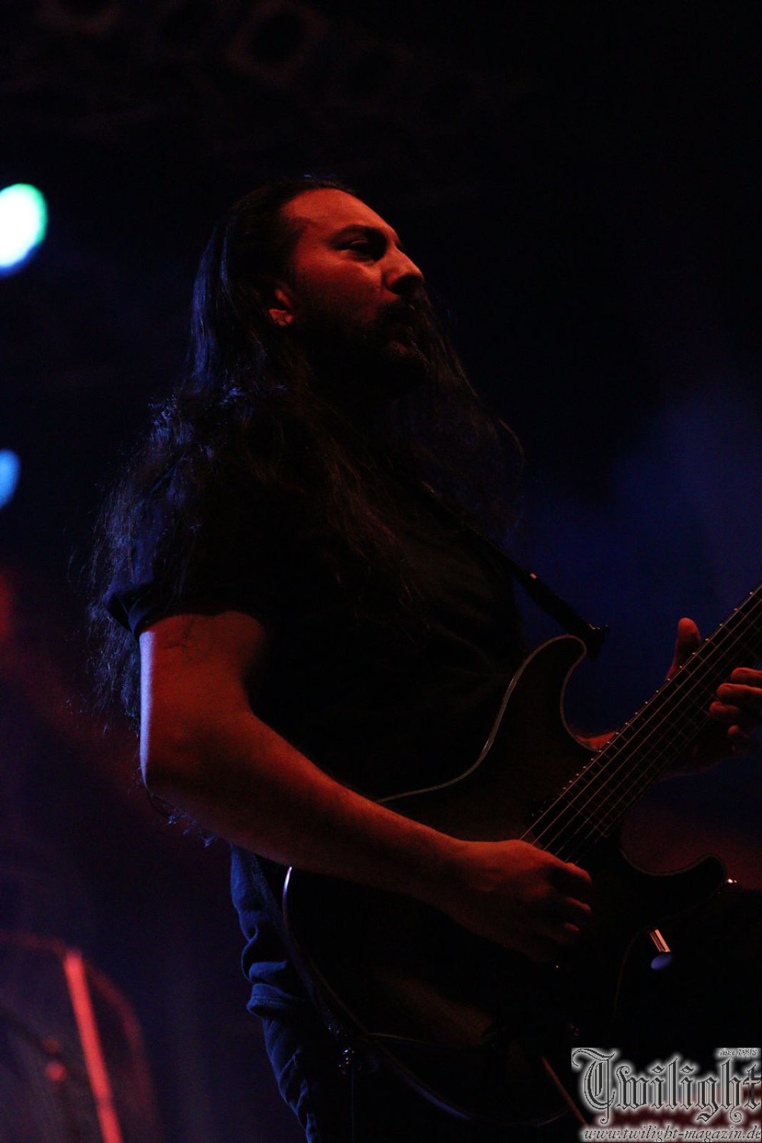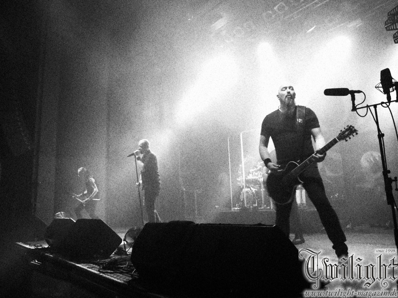 Paradise Lost ist als Live-Band eher eine Wundertüte, mal gut, mal schlecht, mal richtig mies, und Nick Holmes macht es einem da auch nicht unbedingt leichter mit seinen manchmal schon fast komplett ausbleibenden Ansagen. Heute hat er einen guten Tag und ist redselig. Sie seien Paradise Lost, aber das sollte sich inzwischen herumgesprochen haben, scherzt er. Ebenfalls verweist er darauf, dass sie ein paar alte Songs spielen würden, weil sie eben auch eine ganze Menge davon hätten. Kein Wunder, schließlich ist "Ascension" das mittlerweile 17. Studioalbum der Band. Also was spielt man, wenn man gerade das aktuelle Album betourt, aber eigentlich genug Hits in der Hinterhand hätte, um ganze Abende zu füllen? Man muss aussieben. Und so bleiben fast schon erwartungsgemäß Lost Paradise und Gothic sowie Symbols of Life, Paradise Lost, The Plague Within und Medusa komplett ungehört. Der Schwerpunkt der Songs liegt natürlich auf Ascension, aber auch der Rest kann sich absolut sehen lassen. Mit "Say just words" wird das offizielle Set beendet, um dann noch einmal mit No Celebration, Ghosts und Silence like the grave zurückzukommen. Die geringste Gegenliebe erhält die Band wohl für Mouth, aber die Band hat eine so breite Fangemeinde über die Jahre gesammelt, dass man es natürlich nicht mit jedem Song auch jedem recht machen kann. Die Soundprobleme von Saturnus sind übrigens inzwischen gelöst, sodass man einen richtig satten Sound genießen kann, und auch die Backtracks vom Gesang sind so dezent eingesetzt, dass man es nur an manchen Stellen tatsächlich direkt merkt. Es hat auf jeden Fall nicht das Playback-Flair vom Ultima Ratio Auftritt.