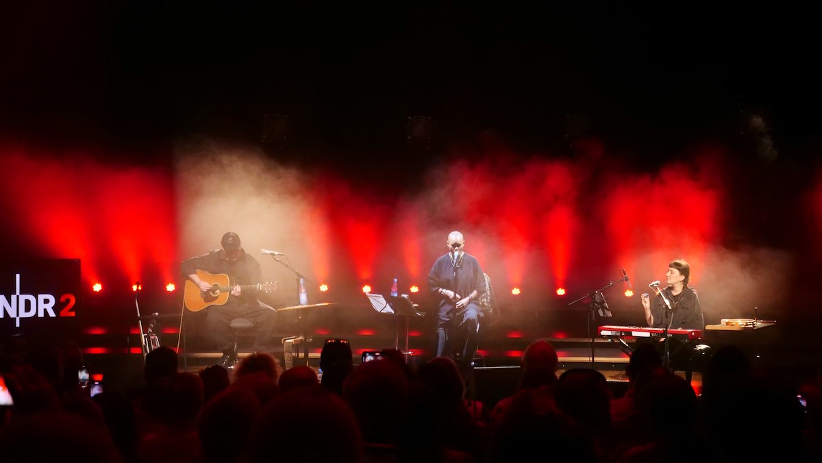 Der Kleine Sendesaal fasst 330 Plätze verteilt auf Rang und Parkett. Und der war voll. Die Bühne gab schnell Klarheit darüber, dass es ein Akustikset werden würde im Trioformat.Ab 1830 Uhr begannen die Gäste in den Sendesaal zu strömen.