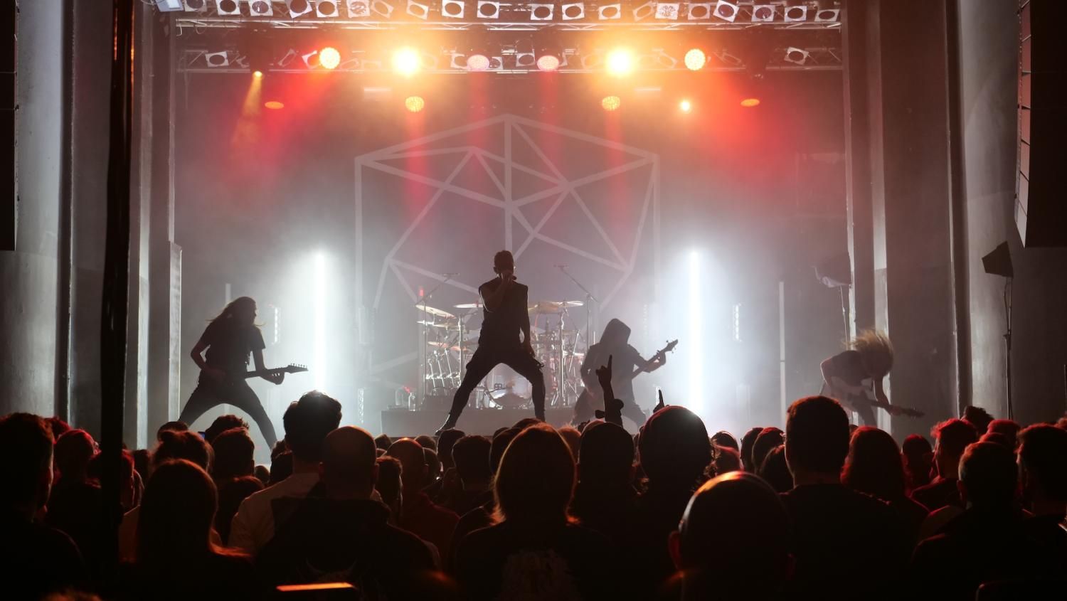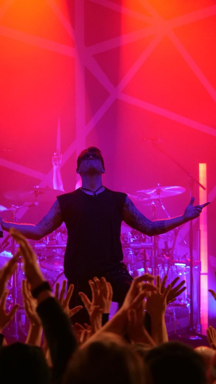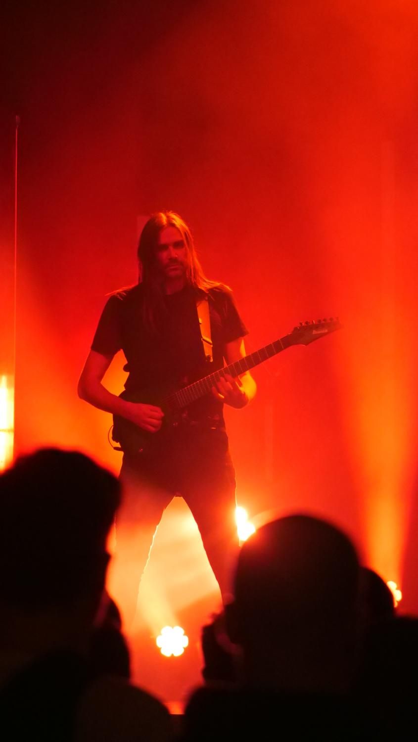 Stilistisch Metalcore mit Djentanteil. Die Stimmfarbe Camille Contreras' war clean und in den Shouts nicht unähnlich einer Maria Brink (IN THIS MOMENT). Zu meiner Begleitung sagte ich in Anbetracht des Outfits (Overknees mit Absatz, Minirock, ärmelloses Oberteil und den zwei Minizöpfen), ihrer Bühnenpräsenz, gesanglichen Performance und Provenienz: Uih, Lady Bug auf Speed! NOVELISTS FR ernteten große Begeisterung, die Lichtshow war stimmungsvoll, die Bühnenshow und natürlich die Musik ebenso. Der Zuspruch des Publikums wirkte auch größer, weil die Anzahl in der Zwischenzeit deutlich angewachsen war. Es war bei weitem nicht so voll wie beim - ausverkauften - WINGENFELDER Konzert im November 2024. Da ich nicht weiß, ob oben die Galerie auch offen war, schätze ich pessimistisch 600 Gäste im Bereich vor der Bühne. Um ca. 2030 beendeten NOVELISTS FR ihr Set.