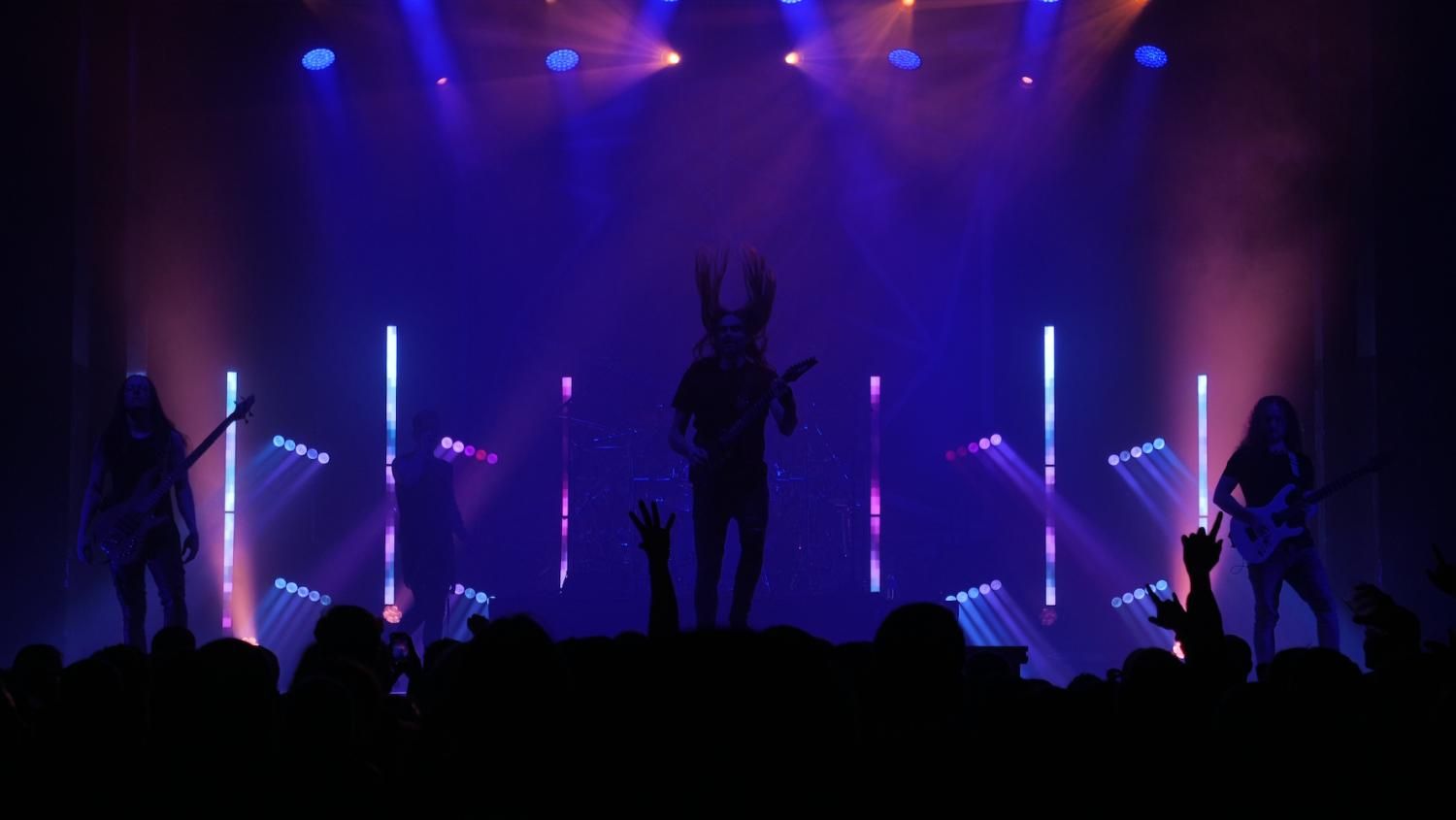 Um 2100 begann das Intro, was dann in Natural Disaster vom aktuellen Album überging. Ein wuchtiger Einstieg ins Set. Amos Williams (Bass) hatte zu dem Zeitpunkt mit einer Kapuze seine langen Haare verdeckt und wirkte im Bühnenlicht wie ein bedrohlicher Kuttenträger. Die beiden Gitarristen Acle Kahney und James Monteith standen überwiegend ortsfest auf der rechten bzw. linken Bühnenseite. Den Platz der Bühne nutzten am meisten Sänger Daniel Tompkins und Amos Williams. Nur Chuck Norris bewegt sich spielend mit einer Schießbude auf der Bühne. Will heißen: Jay Postones thronte hinter seinem Schlagzeug und sorgte für einen sehr präzisen Takt.