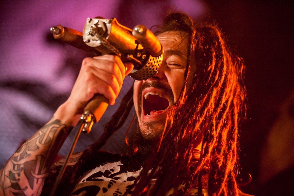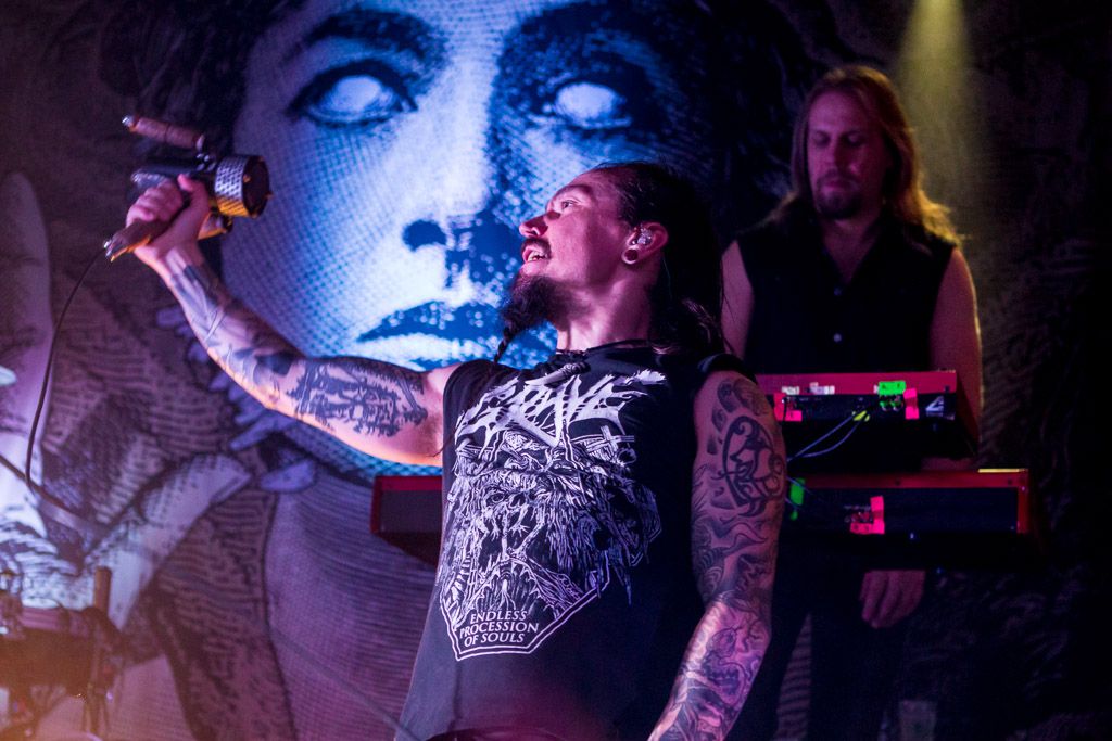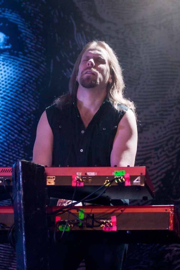 ...und ein dankbares, vor allem aber hungriges AMORPHIS-Publikum perfekt angeheizt hat. Nach kurzer Umbaupause werden die Finnen um den Freund der futuristisch-archaischen Mikrofone frenetisch empfangen. Mit „Shades Of Gray" steigt man ein und ab dem folgenden „Narrow Path" steht ein rappelvolles Musikzentrum bereits auf dem Kopf. Was soll man zu Amorphis noch groß sagen. Glücklicherweise – und das beweist die heutige Show eindrucksvoll – befinden sich die Herren immer (noch) auf dem Zenit ihres Schaffens. Abnutzungserscheinungen? Fehlanzeige! Kaum eine andere Band schafft es so harmonisch, innerhalb eines Sets zwischen beinharten Death Metal, Progressive Rock/Metal, Gothic Metal, Folk und Doom Metal zu wechseln. Der Fokus liegt zwar deutlich auf dem aktuellen Album, von dem mir leider einmal mehr „Enchanted By The Moon" fehlt, trotzdem geizen Amorphis nicht mit Hits und der einen oder anderen Überraschung: „Into Hiding" inklusive voll ausgespieltem „Tales From The Thousand Lakes"-Intro und „Sign From The North Side" vom „Karelian Isthmus"-Debut gehören freilich dazu. Noch mehr zur Sache geht's beim „Vulgar Necrolatry"-Cover der „Privilige Of Evil"-EP, bei dem Tomi klarstellen kann, wieso er heute im Grave-Shirt aufgelaufen ist. Mit „Skyforger", dem zu erwartenden „Black Winter Day" und „House Of Sleep" als Zugabenblock schickt man schließlich eine Fanschar heimwärts, die ihre Idole eigentlich gar nimmer von der Bühne entlassen möchte. Geadelt von den Klängen der Elekelaiset-Interpretation von „House Of Sleep" geht ein rundum gelungener Abend zu Ende. Schön war´s und wenn es am Schönsten ist, dann soll man ja bekanntlich gehen.