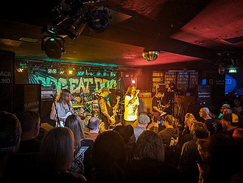Danach kamen GROVE STREET aus dem schönen Southampton im Süden Englands auf die Bühne. Die Truppe hat im September ihr Debüt „The Path To Righteousness“ veröffentlich – wobei man früher bereits Musik unter dem Namen GROVE STREET FAMILY veröffentlicht hatte – und präsentierte eine wilde Mischung aus Hardcore und Thrash Metal, welche mitunter an D.R.I. erinnerte, aber auch durchaus etwas anstrengend sein konnte. Gitarrist Sandy hüpfte wie ein Flummi durch die Gegend, wobei manch eine Pose doch arg einstudiert wirkte. Jedenfalls konnte man dem Engländer anmerken, dass er die Posen seiner 90er Jahre Idole eingehend studiert hatte. Während Basser Joe Paine vermutlich die meisten Punkte von der weiblichen Fans einheimsen konnte, hatte man bei den verbliebenen Bandmitgliedern eher das Gefühl, dass sie nach 22 Uhr noch gar nicht alleine auf die Straße dürfen. Insofern sorgte Sandys Ansage, man toure bereits seit 10 Jahren durch Europa, zumindest bei mir für Verwunderung. Wie alt waren Sully, Andy und Josh denn da? Egal. Auf der Bühne überzeugten mich viele der Songs weniger als aus der Konserve, wo der rote Faden erkennbarer ist. Stärkster Song des Abends war für mich der titelgebende Track „The Path To Righteousness“.