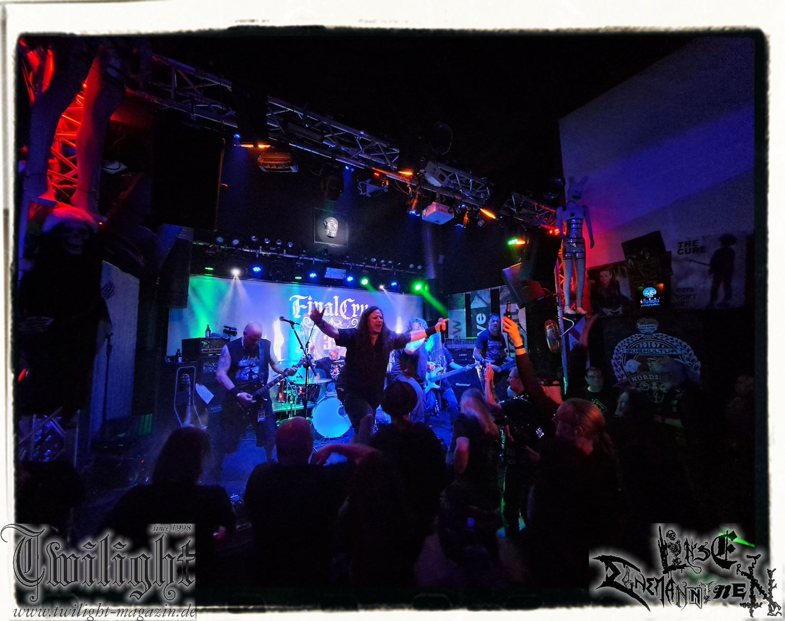 Es waren aber wiederum FINAL CRY, mit denen ich selbst mehrfach als Gitarrist und Sänger verchiedener Bands die Bühne teilen durfte und es waren FINAL CRY, die ich auch gerne als Veranstalter mit dem Metal-Club-Harz e. V. nach Ilsenburg holte. FINAL CRY-Gitarrist Eiko war über die Jahre immer mal wieder als Schreiberling mit dem Twilight Magazin verbandelt und sollte, als ich selbst schon zum festen Schreiber-Kader des Magazins gehörte, zu einem herzlichen Freund werden, den man zwar manchmal zu nehmen wissen muss, der allerdings im Zweifel jederzeit bereit ist für andere Menschen bedingungslos durchs Feuer zu gehen... So war er es, der mich in meinem unbändigem Übermut eines Heranwachsenden, der mich 2005 auf dem Party.San vor einer nicht unverdienten Trachtprügel prominenter Musiker bewahrte. Die Zeiten sind glücklicherweise vorbei. Nun ja, und neben meinem hochgeschätzten Twilight-Kollegen Trille ist es auch mein langjähriger Metalglory-Kollege und Ex-Twilight-Redakteur Arthur, mit dem mich eine gemeinsame FINAL CRY – Vergangenheit verbindet, wie wir gemeinsam an diesem Abend teilweise unverhofft feststellen.