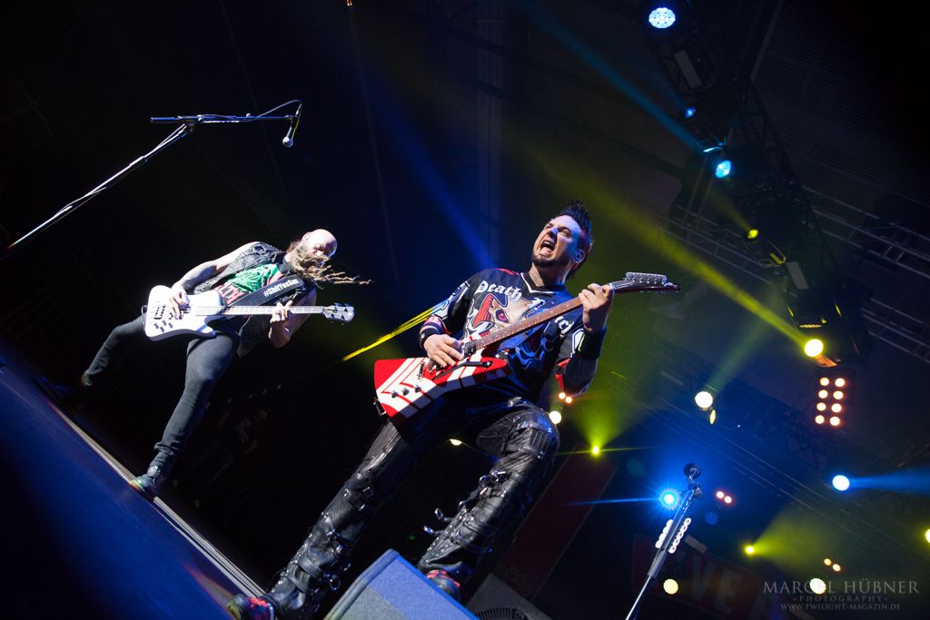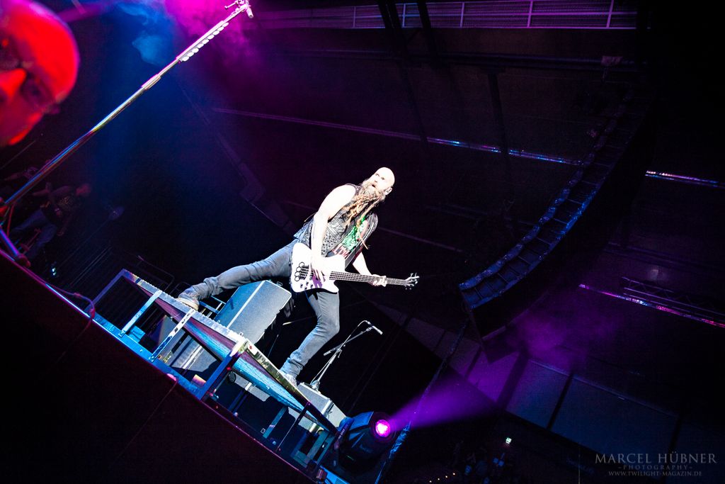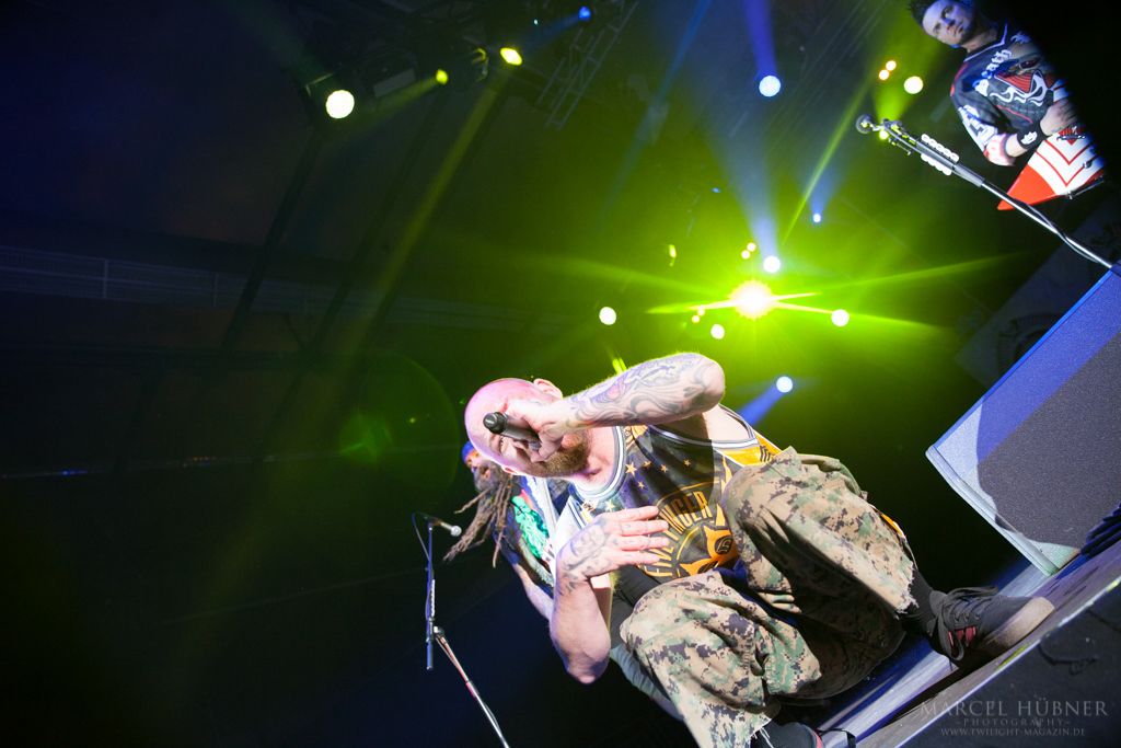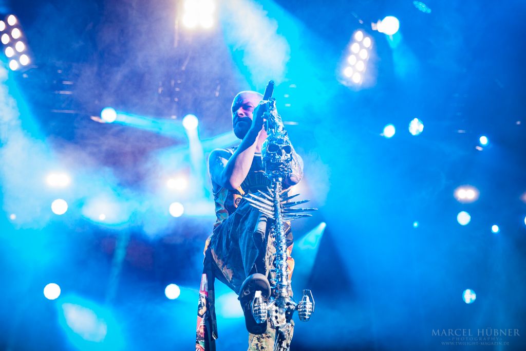 Als Five Finger Death Punch an der Reihe waren, war das Publikum wach und gab Vollgas. Sänger "Ghost" Mody spielte mit dem Publikum und selbst ein Trikot der Deutschen Fußball Nationalmannschaft durfte bei seinen Outfits nicht fehlen. Leider hatte er einige Probleme mit dem Mikrofon, was aber dank der überrangenden Lichtshow und dem fast perfekten Set unterging.