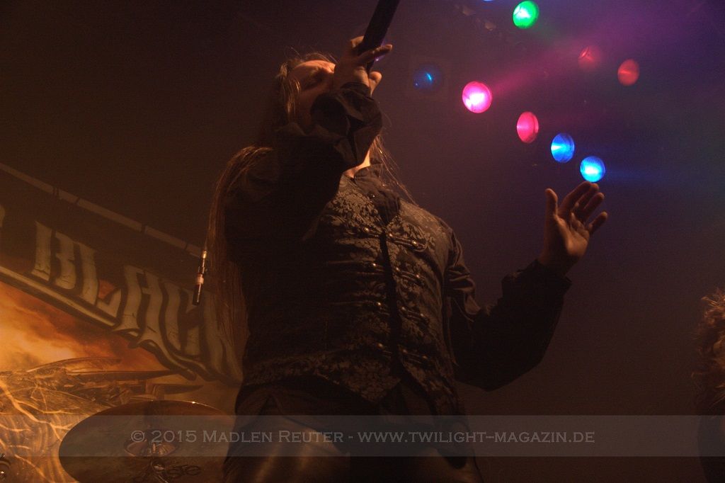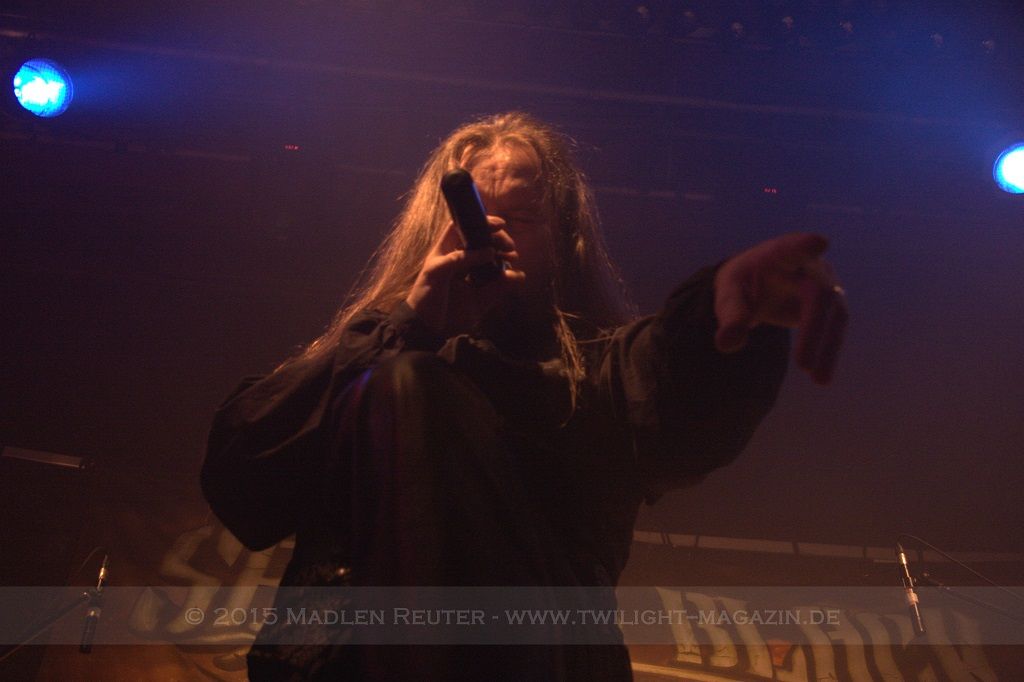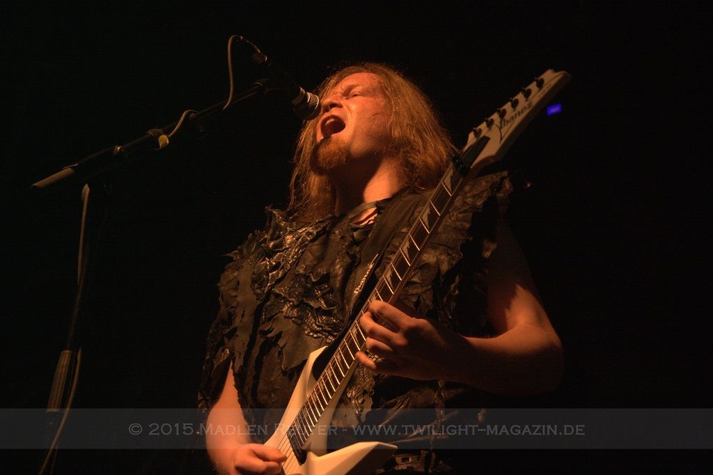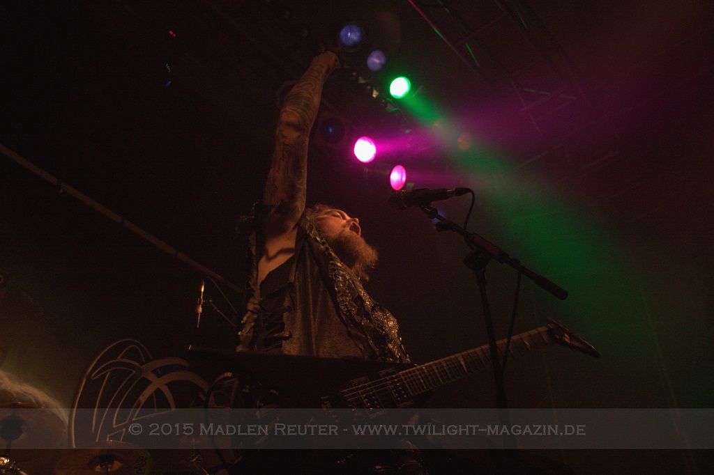 Als nächstes standen dann ORDEN OGAN auf der Agenda. Wie schon bei SERIOUS BLACK war der Sound eher mittelmäßig abgemischt. Das Schlagzeug war auch hier viel zu laut und übertönte alles andere. Allerdings war das Schlagzeug hier wirklich passig, denn das hat mal so richtig geknallt. Da hätte man nur die anderen Regler etwas nach oben schieben müssen und es wäre richtig geil gewesen. Insgesamt war der Sound hier allerdings schon deutlich besser als beim ersten Act des Abends. Zwar wurde die Lichtshow hier etwas düsterer und stimmungsvoller, war aber dennoch recht langweilig.
