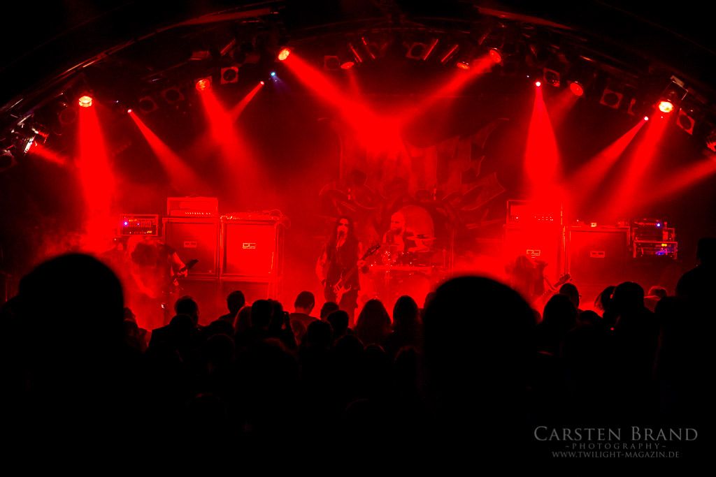 Danach folgt eine lange Pause und die Bühne wird fleißig in Nebel gehüllt. Schattenspiele 2.0 oder eben der Auftritt von MARDUK. Aus fotografischer Sicht ist da 'wenig Gutes bei' aber musikalisch legen MARDUK die Messlatte des Abend s noch einmal eine Stufe nach oben. Auch die Schweden haben ein neues Album im Gepäck und eröffenen somit auch gleich mit "Frontschwein", dem Titeltrack. Hass, Wut und Zerstörung fließen von der Bühne auf das Publikum und der Sound aus unerbittlicher Drum Arbeit, kompromisslosem Gitarrenfrickel und morbidem Gesang des Herren Mortuus kriechen unbeirrt in die Gehörgänge. Die 'Panzerdivision' bahnt sich ihren Weg durch eine Setlist aus aktuellen Stücken und Klassikern wie "502" und "Slay the Nazarene". Den Schweden gebührt schon mehr Stagetime als den beiden Vorbands, diesen Platz braucht aber auch dieses Inferno. MARDUK stellt damit einmal mehr unter Beweis, warum sie so weit oben stehen im Bereich Black Metal.