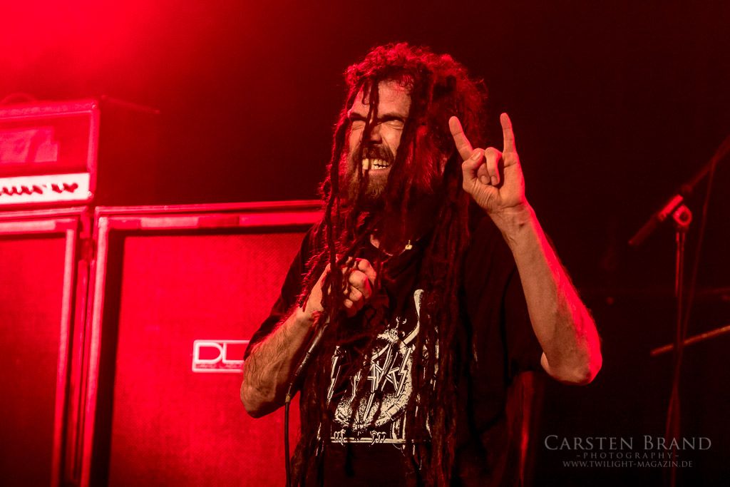 Was kann denn jetzt noch kommen, nachdem drei großartige Bands so hervorragend vorgelegt haben? Eine eigentlich schwere Aufgabe, gäbe es da nicht den werten Herren Barnes. Ohne viel Schnörkel, ohne Nebel und große Lichtshow steht der Frontmann samt seiner Band auf der Bühne und eröffnet mit "Silent Violence" gar nicht mal so leise. Die Markthalle scheint nochmal einen Besucherschub erhalten zu haben, und in den ersten Reihen ist nurn der pure Krieg ausgebrochen. "Revenge of the Zombies" folgt erbarmungslos und lässt keinen Freiraum zum atmen. Der Abend hat hier definitiv seinen Höhepunkt erreicht und SIX FEET UNDER bieten einen mehr als würdigen Headliner. Auch wenn auf Corpse Paint a la HATE und Nebel a la MARDUK verzichtet wird, bietet die Show der Amerikaner durch ihre Reduktion auf die Musik feinste Unterhaltung. Ein neuen Silberling haben SIX FEET UNDER nicht zu bieten, und die Setlist besthet auch eher aus älteren Werken, was der Stimmung aber zu keinen Zeitpunkt einen Abbruch tut. Chris Barnes ist in Höchstform und man sieht der gesamten Band die Spielfreude an. Ein würdiger Abschluss des Hatefest Packages.