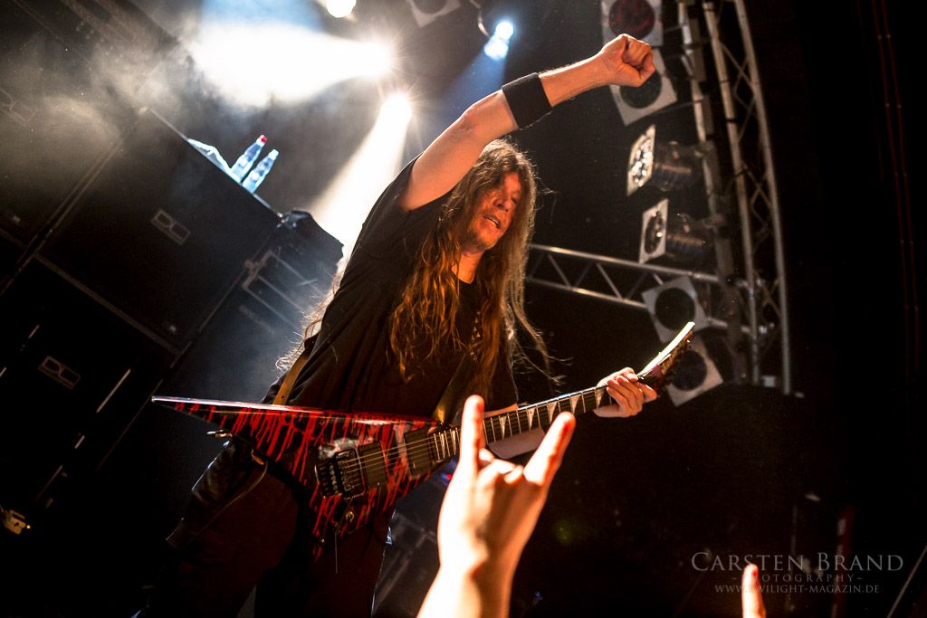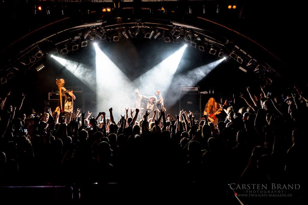Vader entern als zweite Band die Bühne und preschen auch sogleich ohne viel Schnörkel los. Jeder der VADER einmal real erleben durfte, weiss um die Live-Qualitäten der Band. Und der Abend in der Markthalle macht da keine Ausnahme. "Tibi et Igni" lautet der Name des neuesten Silberlings und mit ein paar Liedern wird dieser erfolgreich in die Setlist integriert. Frontmann Peter ist sichtlich gut gelaunt und zeigt über kurze Ansagen immer wieder, dass der Kontakt zu den Fans eine wichtige Rolle für die Band spielt. Neben neueren Werken wird auch altbewährtes präsentiert und der immer mehr in Fahrt kommenden Meute um die Ohren gehauen. Mit "This is War" folgt ein Klassiker als krönender Abschluss eines mehr als soliden Auftritts, der jedcoh auch leider viel zu kurz gekommen ist.
