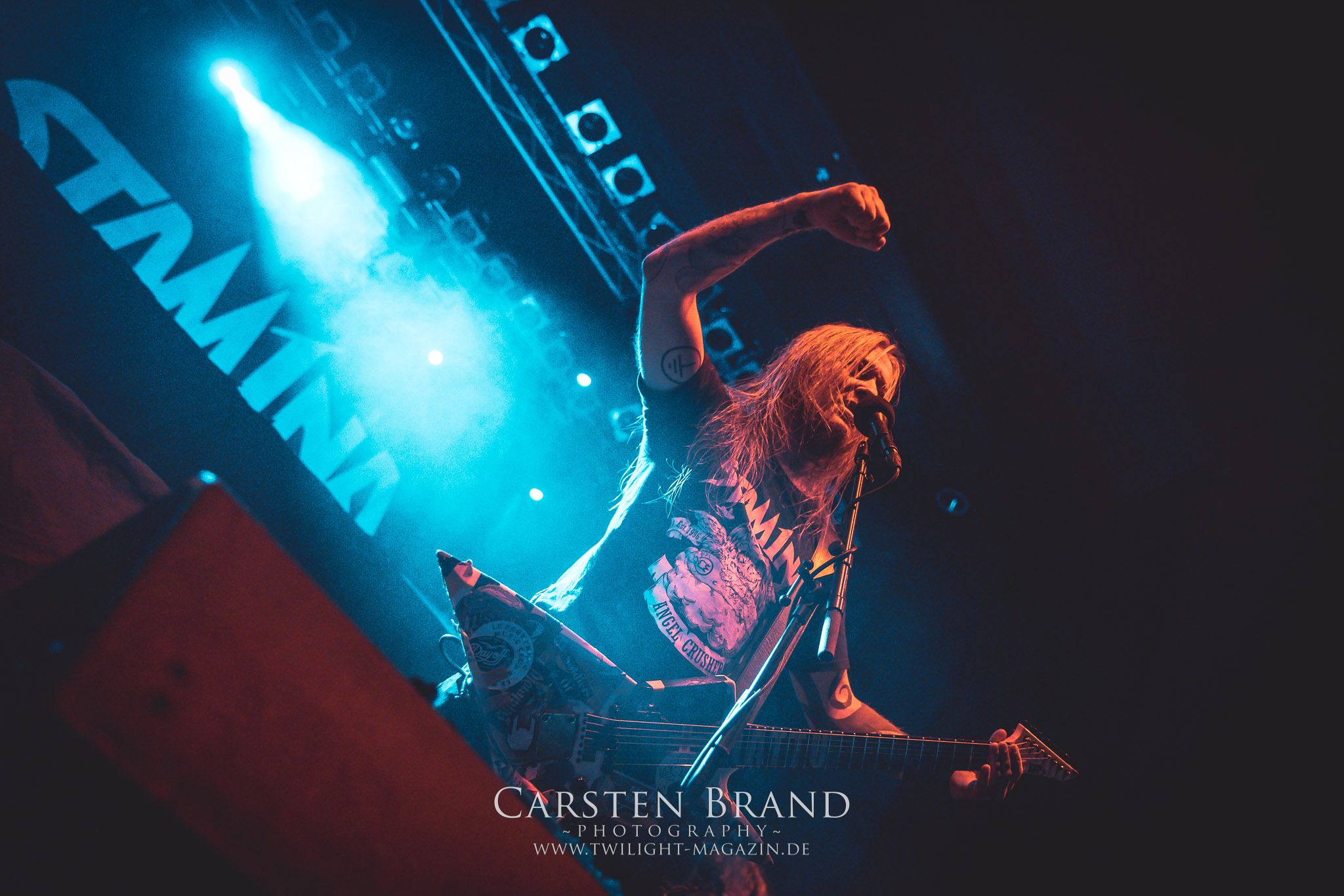 Etwas überpünktlich enterten Stam1na dann auch die Bühne und zeigten einmal mehr, dass sie einfach Bock drauf haben, ihre Mischung aus Thrash und Death Metal ins Publikum zu feuern. Trotz der eingeschränkten Platzverhältnisse auf der Bühne wurde jeder übriggebliebene Quadratmeter für die Showaction genutzt.