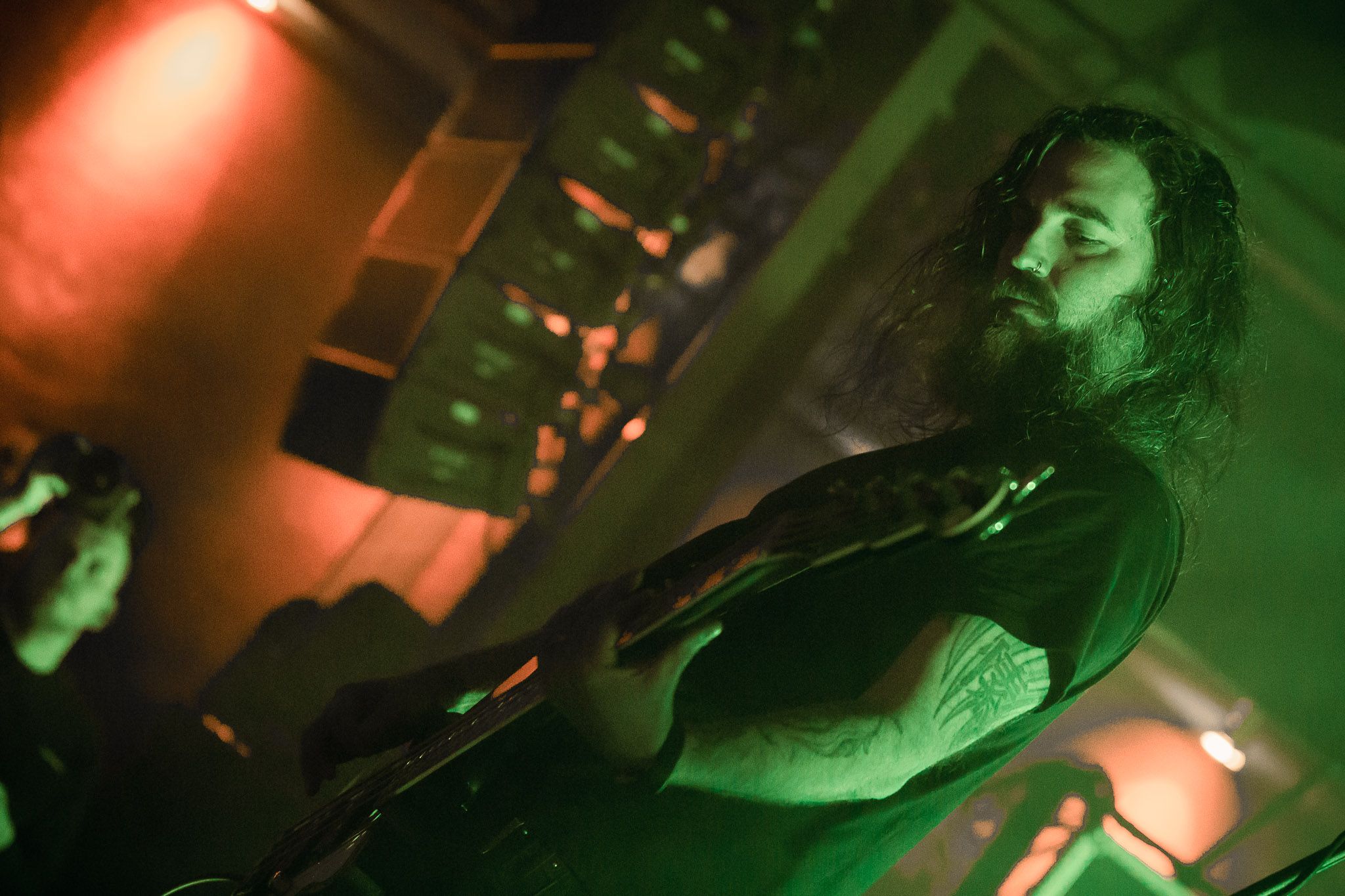 Los gehts nach vorne zur ersten Band. Die US Amerikaner sind wohl den meisten Anwesenden unbekannt und auch bei mir haben sie noch keine Kerbe geschlagen. Die musikalische Arbeit ist aber solide und ordnet sich irgendwo im PostRock ein. Die Band bzw. Die Musik braucht sicher ein paar Durchgänge und lässt sich nicht beim einmaligen Hören sofort erschließen. Dennoch schafft es die Band, eine wunderbare Aura zu schaffen und ordentlich vorzulegen. Das Grünspan füllt sich während des Sets merklich und wird langsam gerappelt voll. Die positive Stimmung der Band springt auf die ersten Reihen über und sorgt zusätzlich für ordentlich Wärme.