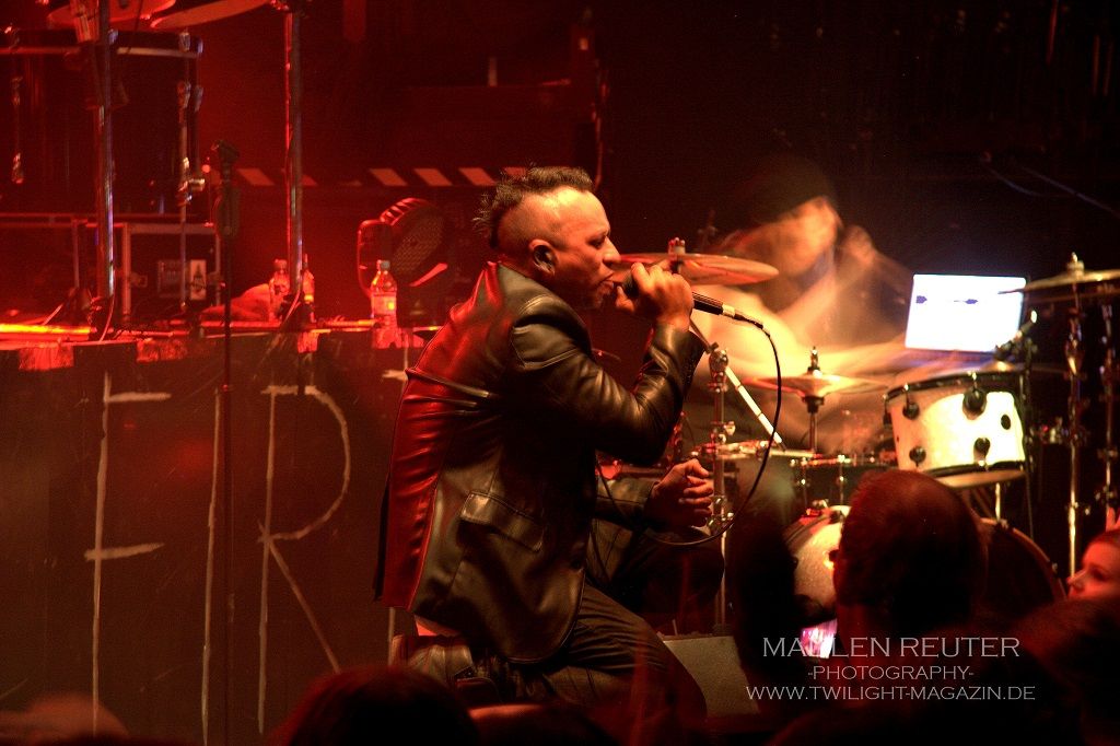 Sänger Erc ist, und bleibt, einfach das größte Energiebündel, das ich jemals auf einer Bühne gesehen habe. Es gab kaum einen Moment, in dem der Mexikaner einmal ruhig stehen geblieben wäre. Von einer Seite der Bühne, rannte er munter zur Anderen, und sang sich die Seele aus dem Leib. Auch extravagante, hohe Luftsprünge standen an der Tagesordnung. Bei manch einem Sprung habe ich mir ein wenig Sorgen gemacht, ob dieser waghalsige Stunt wirklich gut enden würde. Allerdings hat dieser menschliche Flummi genug Übung darin und es ging alles glimpflich aus.