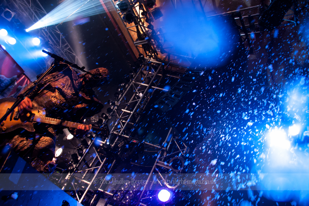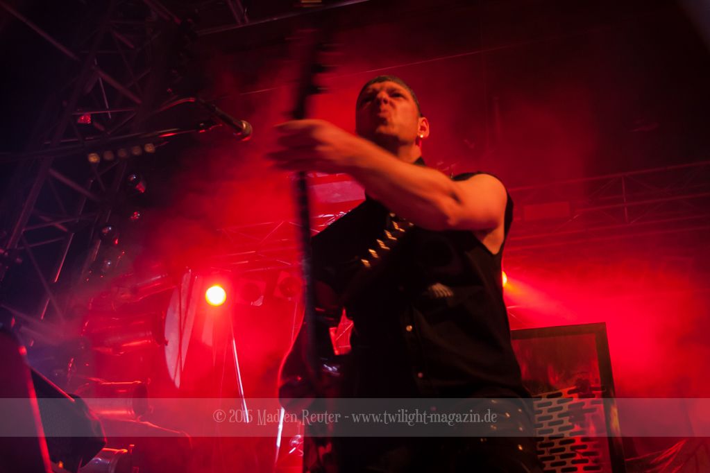 Bereits zwei Stunden vor Einlass habe ich mich vor der Halle eingefunden. Zu meiner großen Überraschung war noch niemand dort. Aber hey, so hatte ich wenigstens genug Platz, um vor meiner Nervosität wegzulaufen. Gratis dazu gab es dann auch noch einen ziemlich spaßigen Soundcheck mit anzuhören. „Scare Force One“ in Gepfiffen ist durchaus sehr interessant. Nach und nach hatte sich dann eine kleine Schlange gebildet. Nach Einlass bin ich dann direkt zur rechten Seite der Bühne geflitzt und habe mich vor Gitarrist Amen und Keyboarderin Hella niedergelassen. Diese Barrikaden sind echt ziemlich hoch.. Oh, Moment, ich bin einfach nur extrem klein, da war ja was. Wie dem auch sei, danach gings erst mal zum Merch-Stand. Immerhin brauchte ich ja noch ein paar mehr T-Shirts. Ein paar lockere Pläuschchen später ging es dann auch schon mit der ersten Vorband los.