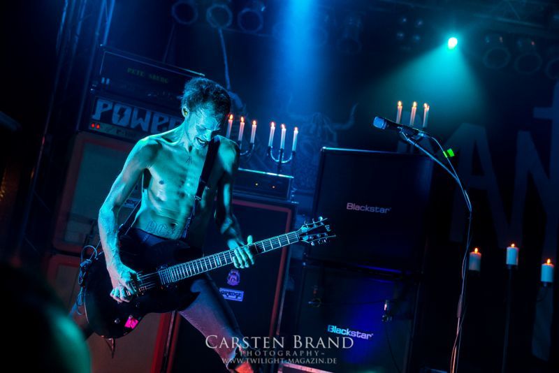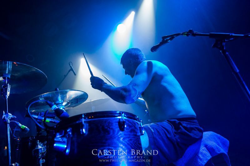 MANTAR hingegen stehen als Headliner nicht nur stilistisch komplett für sich selbst. Hanno und Erinc haben mit ihrem dritten Album "The Modern Art Of Setting Ablaze" noch einmal einen gewaltigen Schritt nach vorn machen können und den ohnehin schon einzigartigen Stil aus (Black)Metal, Stoner Rock, Punk/Crust und Noise weiter verfeinert. Und das zieht an. Zwar ist das Musikzentrum nicht ausverkauft aber rappelvoll und das an einem Montag Abend. Vor der Bühne ist kaum noch ein Durchkommen, als Mantar loslegen. Die selbsternannten Langzeitarbeitslosen haben es eigentlich nicht nötig, ihr Publikum mit Whisky zu bestechen. Trotzdem nimmt Hannover die Verkostung dankend an, während das Duo, das sich auf der Bühne wie gewohnt gegenüber steht, mit "Age Of The Absurd", "Seek + Forget", "Dynasty Of Nails", "Teeth Of The Sea" oder "Midgard Serpent" u. a. die eigentlichen Argumente liefert, die Halle in Schutt und Asche zu legen. Natürlich liegt auch hier der Schwerpunkt auf dem Material vom aktuellen Album obwohl natürlich auch die Gassenhauer der ersten beiden Scheiben nicht zu kurz kommen und sogar erfreulich viel vom Debut gespielt wird. Es dauert nicht lang bis die ersten Diver über das Publikum schweben, wobei Hanno die Crowd explizit dazu animiert, den Surfern das Erlebnis so nachhaltig wie möglich zu machen. "Era Borealis" leutet das Finale ein, das von "White Nights" und "Beserkers Path" gekrönt wird. Zugaben gibt´s nicht bei einem starken Gig, obwohl ich auch Mantar schon wesentlich intensiver gesehen oder erlebt habe.