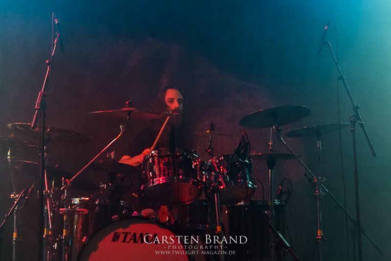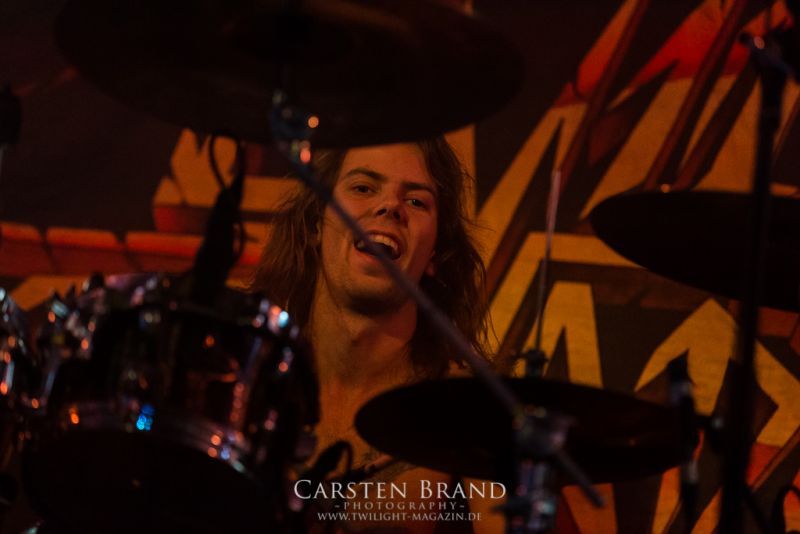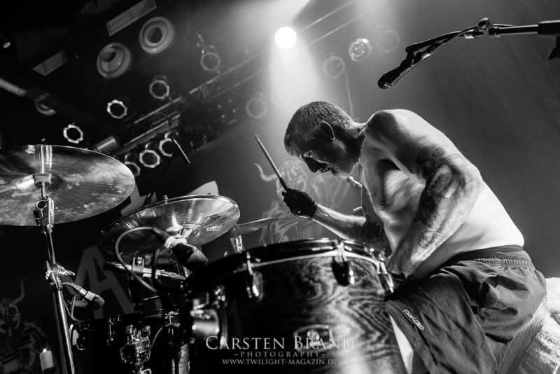 Zumal Sänger Adam nicht nur optisch einem gewissen Tompa ähnelt, auch wenn er stimmlich nicht so variabel und extrem agiert. Hier und da sind noch ein paar Schwarzmetall-Einflüsse heraushörbar. Aber obwohl die Jungs in der Co-Headliner-Position vom Publikum ordentlich abgefeiert werden ist sind mir viele der Songs zu gleichförmig, so dass in der guten Stunde des Gigs deutliche Längen aufkommen. Da mag sich Adam noch so gut ins Zeug legen, beeindruckender ist da doch die lässige wie knochentrockene Drum-Performance von Wandertrommler James Stewart, der u. a. bei Vader aber auch bei den Niedersachsen von Deny The Urge die Stöcke schwingt. Ich möchte die Leistung von Skeletonwitch hier keineswegs schmälern aber in Sachen Eigenständigkeit (Deathrite, Evil Invaders, Mantar) und Intensität (Evil Invaders) ziehen sie in diesem musikalisch großartigen Billing aus meiner Perspektive eindeutig den Kürzeren.