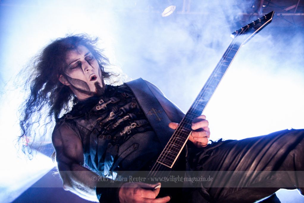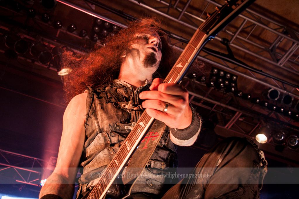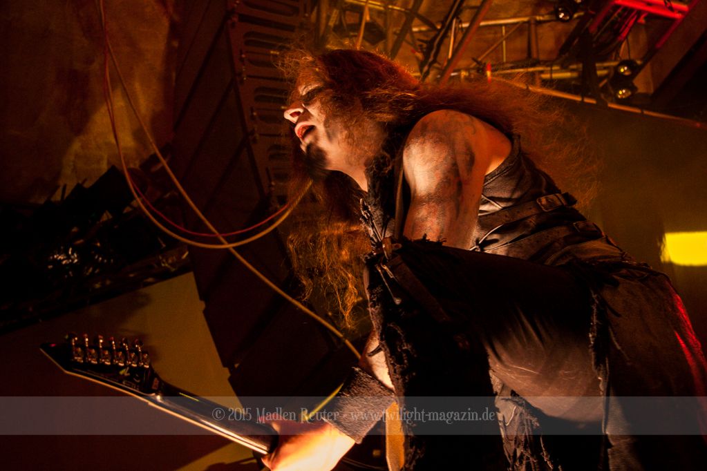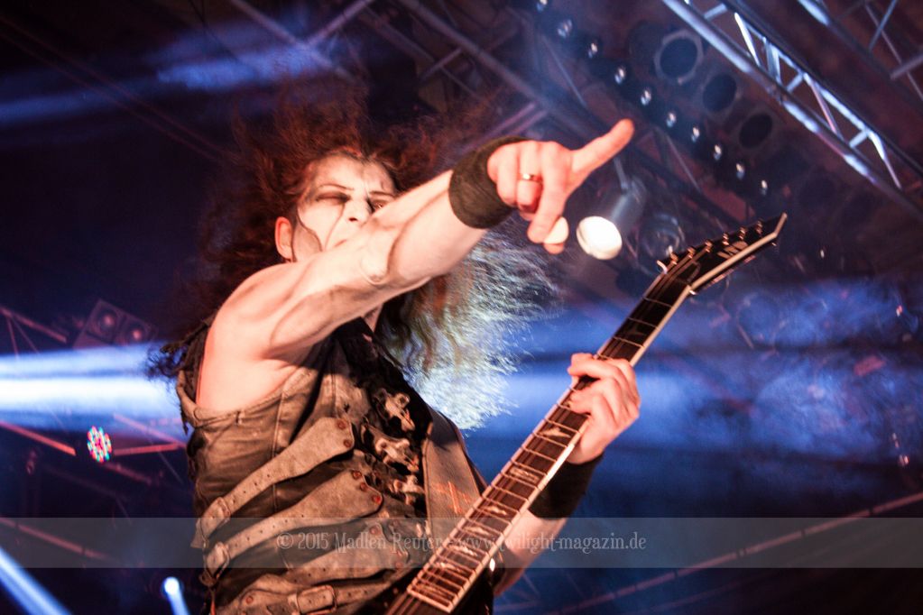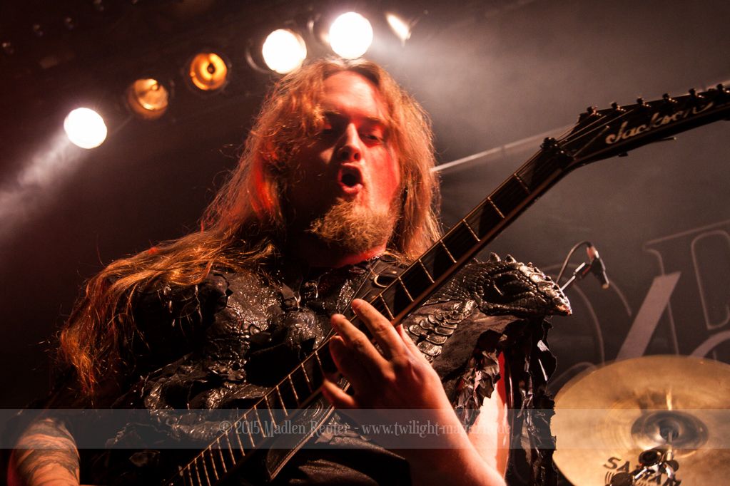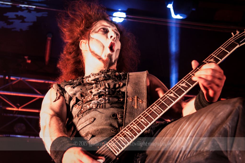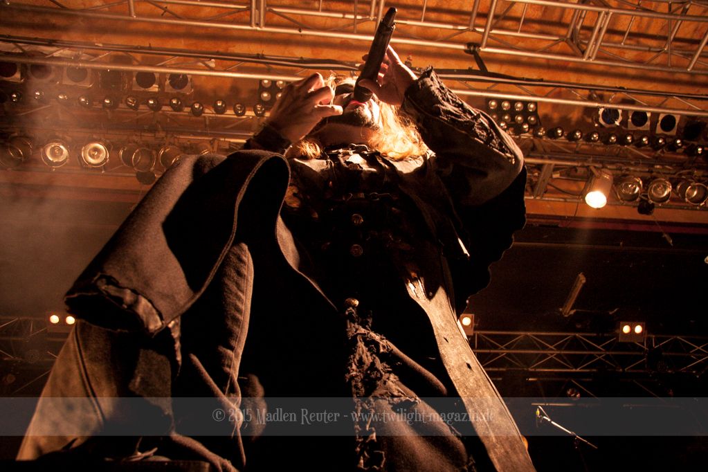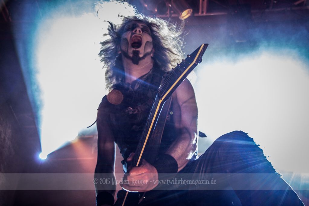 Nach kurzem Umbau wurde es dann Zeit für einen kurzen Ausflug nach Ravenhead. ORDEN OGAN übernahmen das Ruder und heizten den Anwesenden fleißig ein. Neben beeindruckenden Soli, fetten Riffs und brachialen Mitgröhlhymnen bestach die Band auch durch ihren Humor. Sänger Seeb erntet für seine lustigen Ansagen mehrfach Applaus. Auch sonst ist das Publikum fleißig dabei. Zwar brauchen die Besucher meist eine kurze Aufforderung, aber dann läuft es auch wie geschmiert. Die Setlist schien vor allem einen Schwerpunkt auf das neue Album („Ravenhead“, 2015) gesetzt zu haben. Grandios war es „Sorrow Is Your Tale“ live zu erleben, auch wenn mir „To New Shores Of Sadness“ eindeutig gefehlt hatte. Während vor der Bühne die Haare flogen, zockten Tobi und Seeb beeindruckende Soli auf ihren Gitarren. Dieses Teamspiel ist wirklich herrlich mit anzusehen. Und auch an diesem Abend fand sich wieder eine verirrte Seele, die mit lautstarken „Noch Ein Bier“-Rufen Aufmerksamkeit erhaschen wollte. Einzig richtige Reaktion vom Ordensoberhaupt: „Falsche Band man!“. Damit hatte sich die Geschichte für den restlichen Abend erledigt – Vielen Dank!