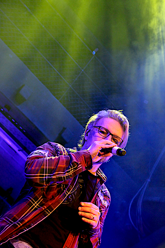 Die Finnen stürzten sich dann aber sofort voll in die Show und fanden mit „Life“, „Only the Broken Hearts“ und „Half A Marathon Man“ einen guten Einstieg. Eine Akustikklampfe suchte man bei Elias allerdings tatsächlich vergeblich. Diese Aufgabe übernahm heute Multiinstrumentalist und AMORAL Gitarrist Masi Hukari. Elias shreddede stattdessen in Höchstgeschwindigkeit übers Griffbrett. Mit „Full Moon“ erreichte die Setlist den ersten Höchepunkt des Abends und an den Publikumsreaktionen zeigte sich wer heute der Headliner war. Frontmann Tony plauderte anschließend aus der biographischen Schatzkiste und erklärte die Entstehungsgeschichte von „Letter To Dana“. Die Megaballade der Finnen gehörte für mich zu den mit der größten Spannung erwarteten Songs des Abends. Die Umsetzung im Rahmen des Akustiksets war dann auch durchaus gelungen, reichte aber leider dennoch nicht an die Version der „Live In Finland“ Scheibe heran, da man dort eine noch akustischere Version präsentiert hatte. Das Publikum feierte den Song dennoch richtig ab und auf den Plätzen und Rängen wurde lautstark mitgesungen. Ernstere Töne schlug der ansonsten gewohnt unterhaltsame Tony vor „I have a right“ an, bevor sich die Band mit „Black Sheep“ als schwarzes Schaf der Szene outete. Es folgte eine Hommage an die DIRE STRAITS, die nahtlos in „Among the Shooting Stars“ überging.