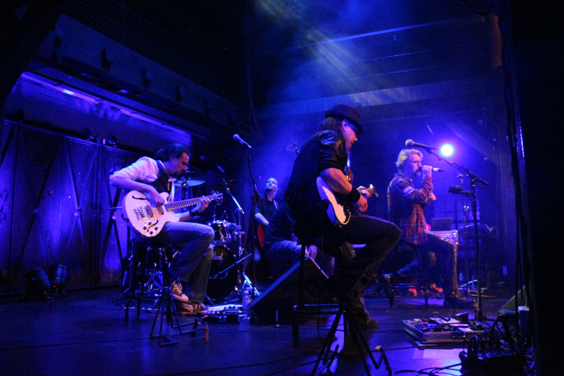 „Gleich hinterm Elbtunnel fängt der Wilde Westen… ähh… Finnland an.“ So oder so ähnlich hatten es TRUCK STOP, glaube ich, mal besungen. Tatsächlich liegt die Fabrik im Hamburger Stadtteil Ottensen verkehrsgünstig für A7-Reisende direkt hinter dem Elbtunnel in einem lebhaften Kiez. Ich hatte in fast 30 Jahren Konzertbesucherei noch nie von dem laden gehört und war nun positiv überrascht. Gemütlicher Industrie-Style mit Wohnzimmeratmosphäre erwartete uns, als wir pünktlich um 19 Uhr in die heiligen (bestuhlten) Hallen eingelassen wurden und uns einen Sitzplatz in der zweiten Reihe sichern konnten: Perfekten Blick auf die Bühne, Rockstars zum Anfassen und direkte Soundbeschallung inbegriffen.