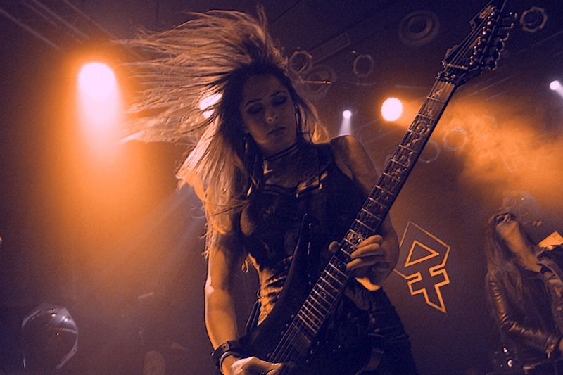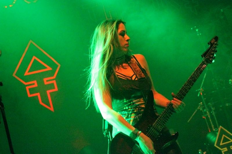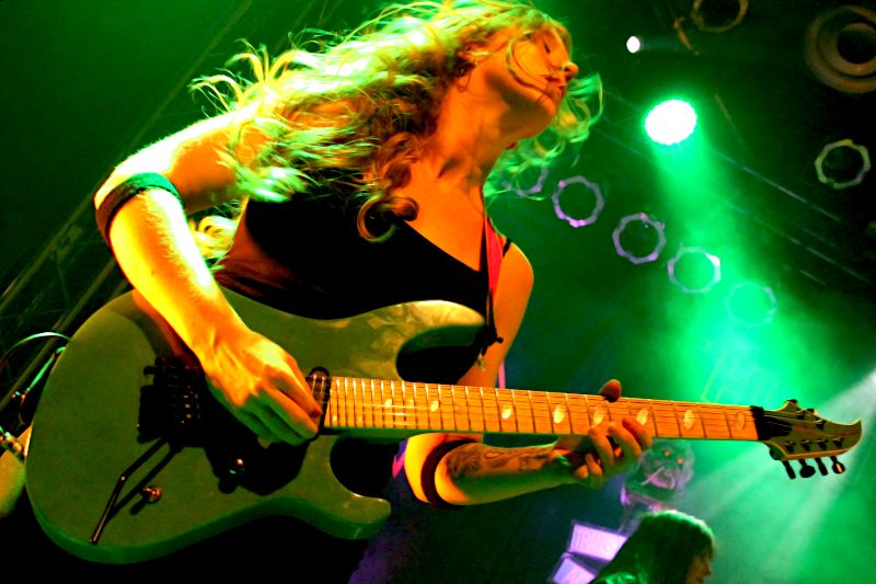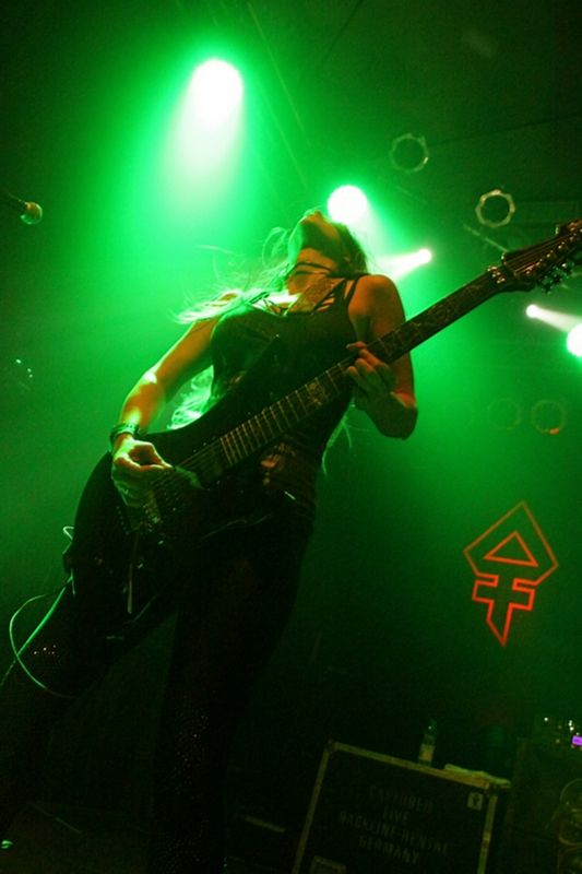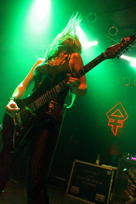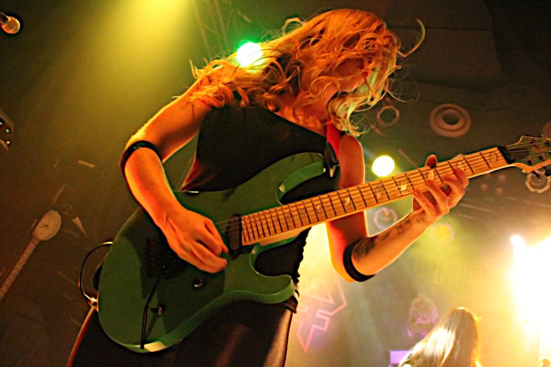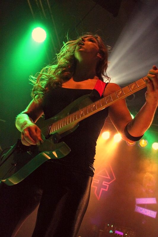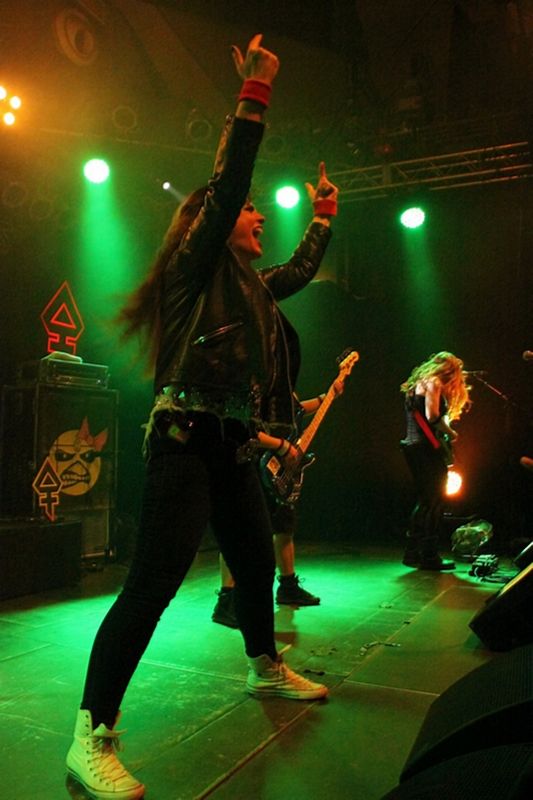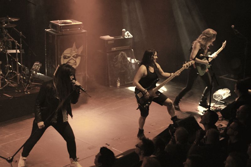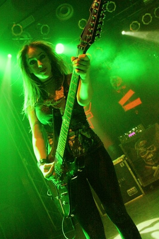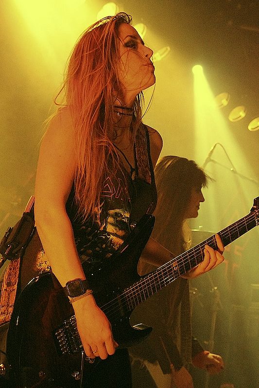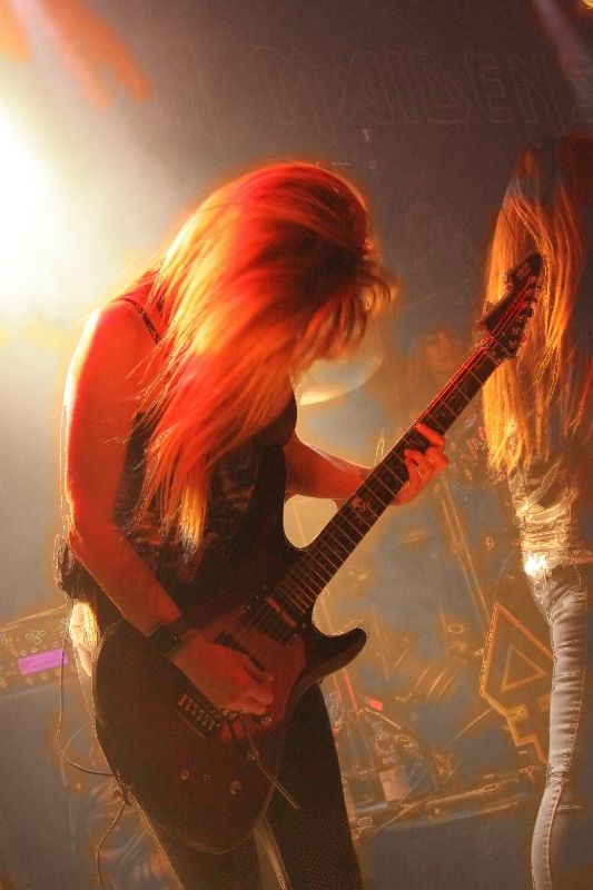 Tieftönerin Steph Harris (Wanda Ortiz) wirkte zunächst etwas steif, konnte sich im Verlauf der Show das ein oder andere Grinsen jedoch nicht verkneifen. Mit der Energie ihres Vorbilds Steve Harris konnte die Kalifornierin nicht mithalten, vom Aktionsradius wirkte sie doch eher wie AC/DCs Cliff Williams. Vielleicht liegt es daran, dass sie die markanten gestreiften Leggings gegen schlichte schwarze Army-Hosen getauscht hat.