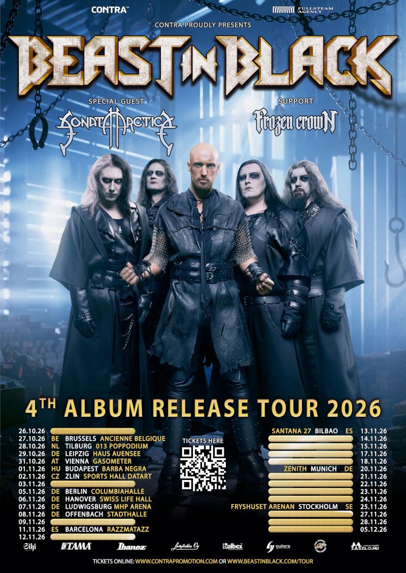 Die Band kommentiert: „Wir freuen uns riesig, unsere Headliner-Tour für Ende 2026 ankündigen zu können, auf der wir das vierte Album von Beast In Black live präsentieren. Sonata Arctica als Special Guests und Frozen Crown als Support werden uns auf dieser Reise begleiten; wir freuen uns sehr, die Bühne mit diesen unglaublichen Bands zu teilen. Wir versprechen Ihnen eine einzigartige Show von Beast In Black und garantieren Ihnen eine unvergessliche Nacht.“