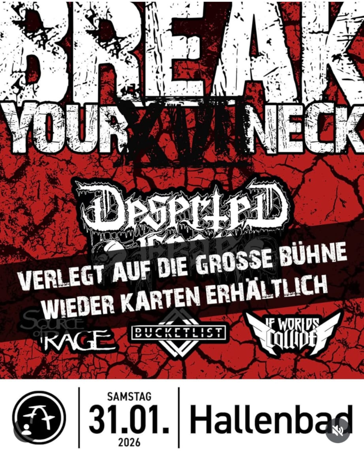 Wer also einen geilen Abend mit Bands wie If Worlds Collide, Source Of Rage, Bucketlist sowie Deserted Fear Bock hat sollte sich jetzt noch schnell Karten besorgen!