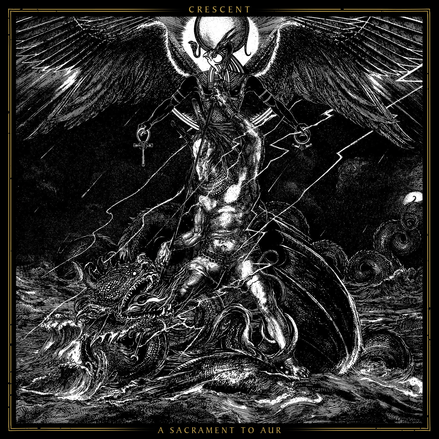 CRESCENTs neues Album „A Sacrament to Aur“ ist ein Übergangsritual durch den endlosen Kampf zwischen Existenz und Vergessen. Es entführt in Visionen von Chaos und Ordnung, Nacht und Tag, Dunkelheit und Feuer, Seth und Apophis.