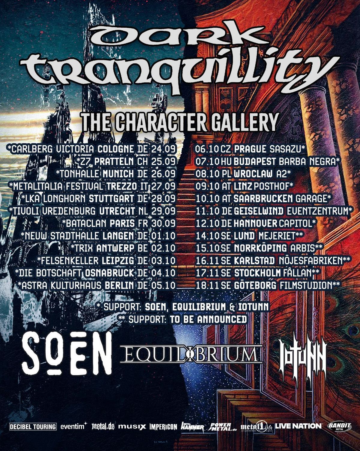 Schnappt euch eure Tickets, sagt es weiter und macht euch bereit für ein unvergessliches Erlebnis. Wir freuen uns darauf, euch dort zu sehen! Nach einer unglaublichen Reise durch 58 Städte Europas im Rahmen der Endtime Signals Tourneen beschreiten wir nun einen neuen, spannenden Weg. Es ist Zeit, zu unseren Wurzeln zurückzukehren und unsere bescheidenen Anfänge zu feiern. 2025 jähren sich zwei Meilensteine unserer Karriere zum 50. Mal – The Gallery (1995) und Character (2005). Um dies zu feiern, starten wir eine besondere Tournee, um diese legendären Alben in den Mittelpunkt zu rücken. Freut euch auf Songs, die wir noch nie live gespielt haben, und auf Klassiker, die seit Jahren nicht mehr auf unserer Setlist standen. Taucht mit uns diesen September in diese unvergesslichen Kapitel unserer Geschichte ein! – Mikael Stanne, DARK TRANQUILLITY