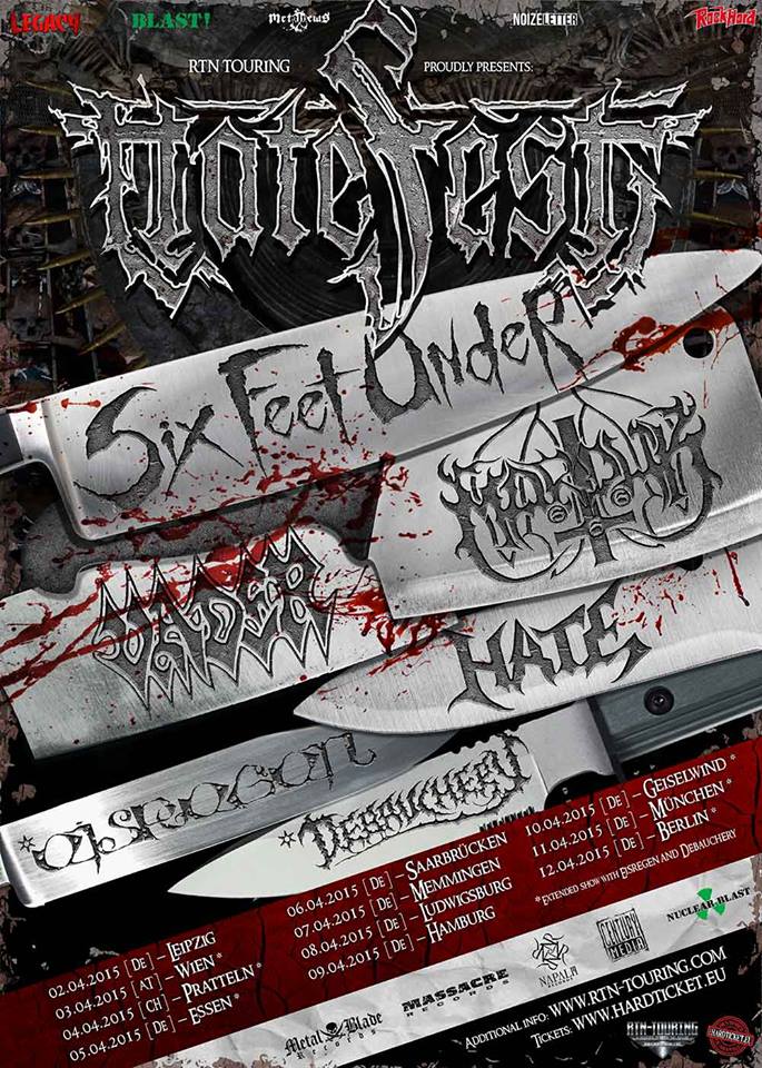 Angeführt wird das Ganze von den US amerikanischen SIX FEET UNDER. Gleich danach packen MARDUK die schwedische Metalkeule aus. Im Gespann folgen zwei polnische Garanten für brachiale Unterhaltung: VADER und HATE. Zu den Wochenend Konzerten schaffen es noch EISREGEN und DEBAUCHERY als special Guest auf die Bühne.